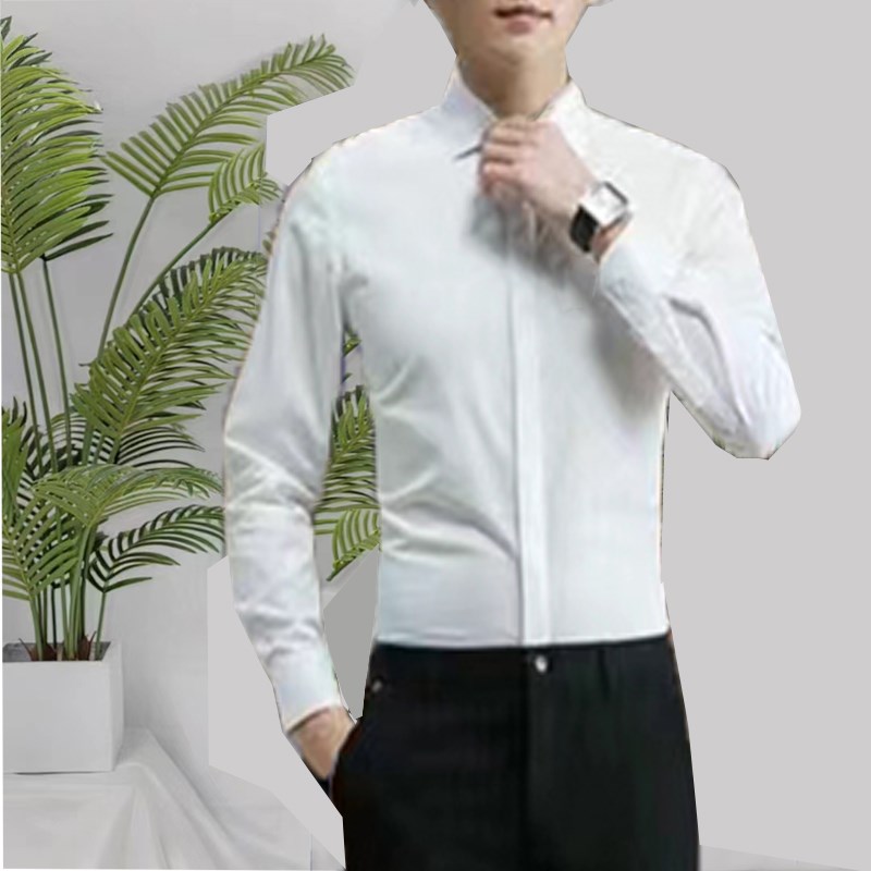 2023新款一汽奥迪男士白色衬衫4S店前台销售工装修身男衬衣工作服