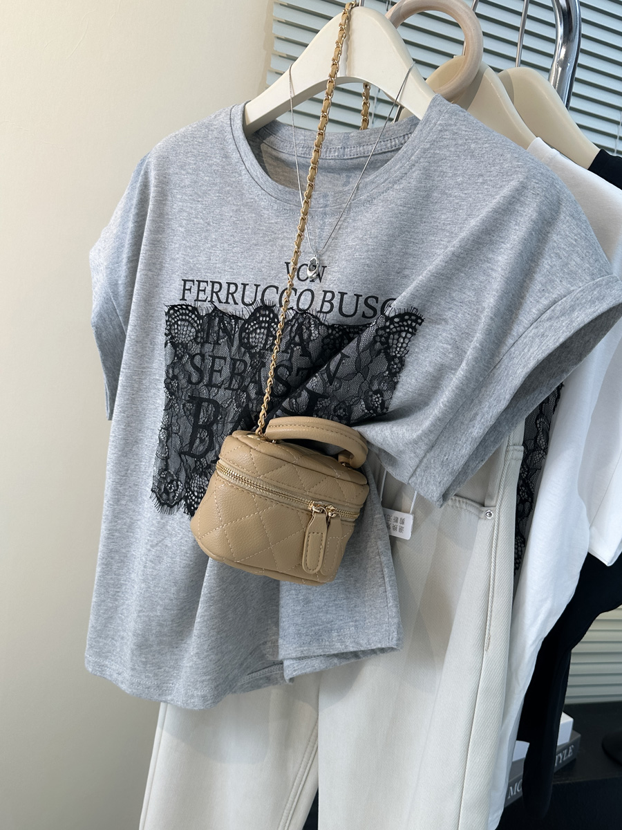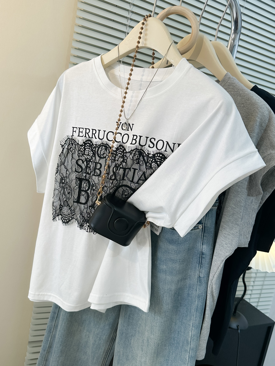 蕾丝设计感短袖T恤女夏季2025新款宽松显瘦打底衫半袖上衣服潮ins