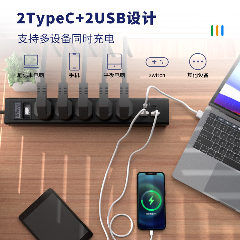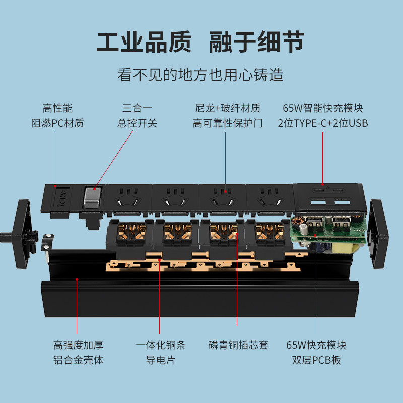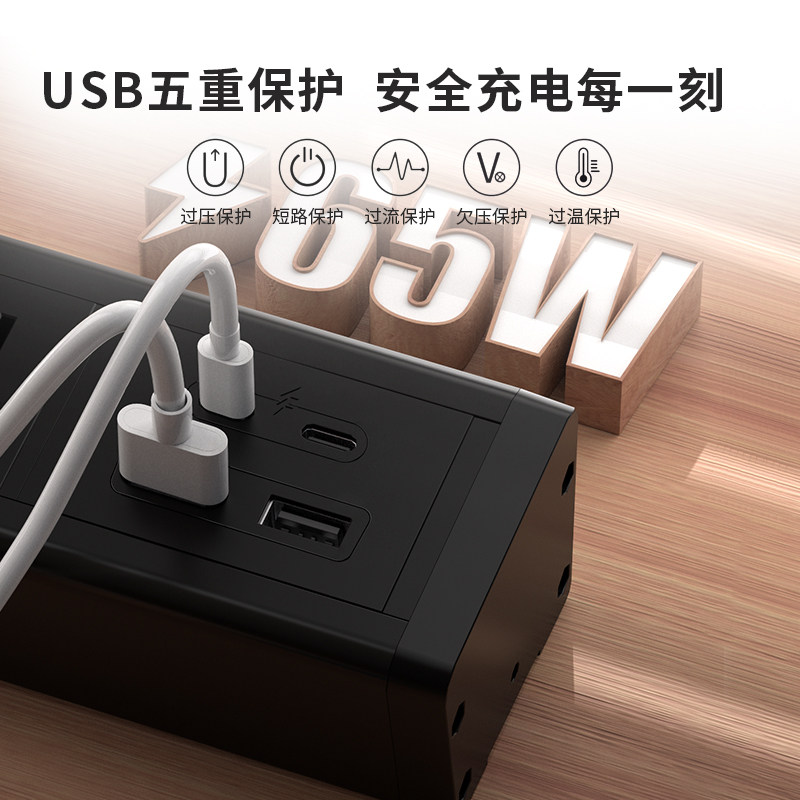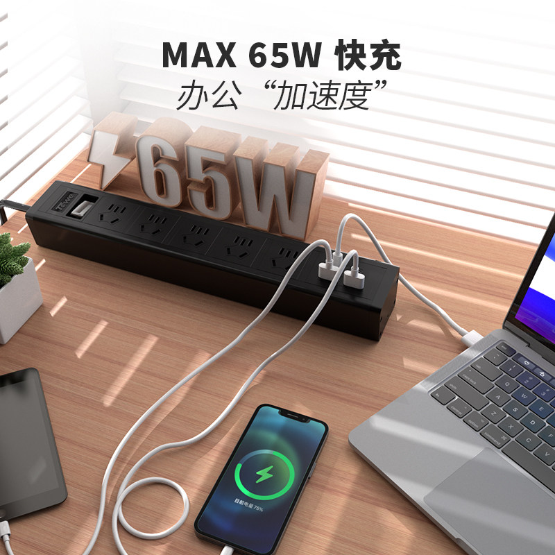 TOWE 同为65W智能快充pdu插座插线板插排接线板Type-c口+USB