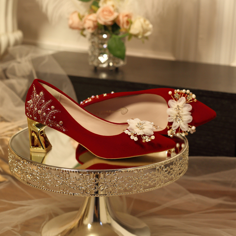 高跟鞋女秀禾婚纱两穿新娘鞋