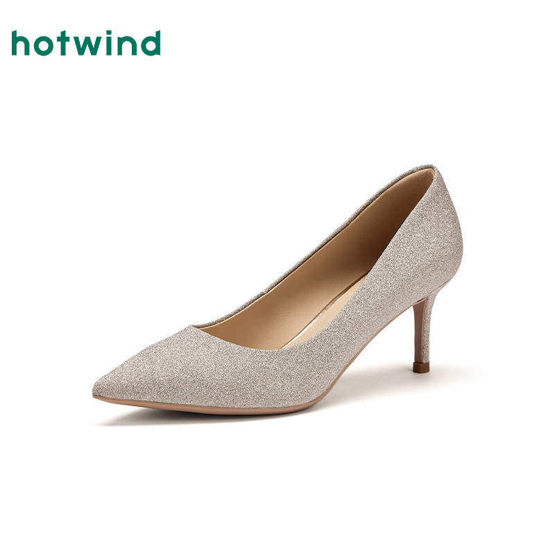 热风高跟浅口单鞋女2025年夏季新款百搭尖头通勤女鞋温柔气质婚鞋