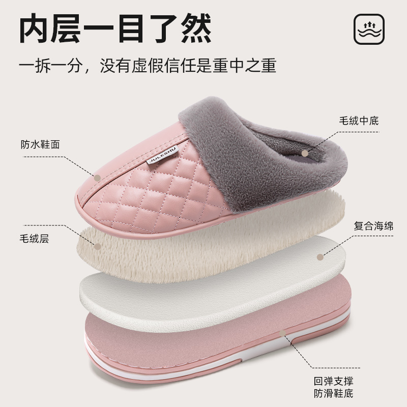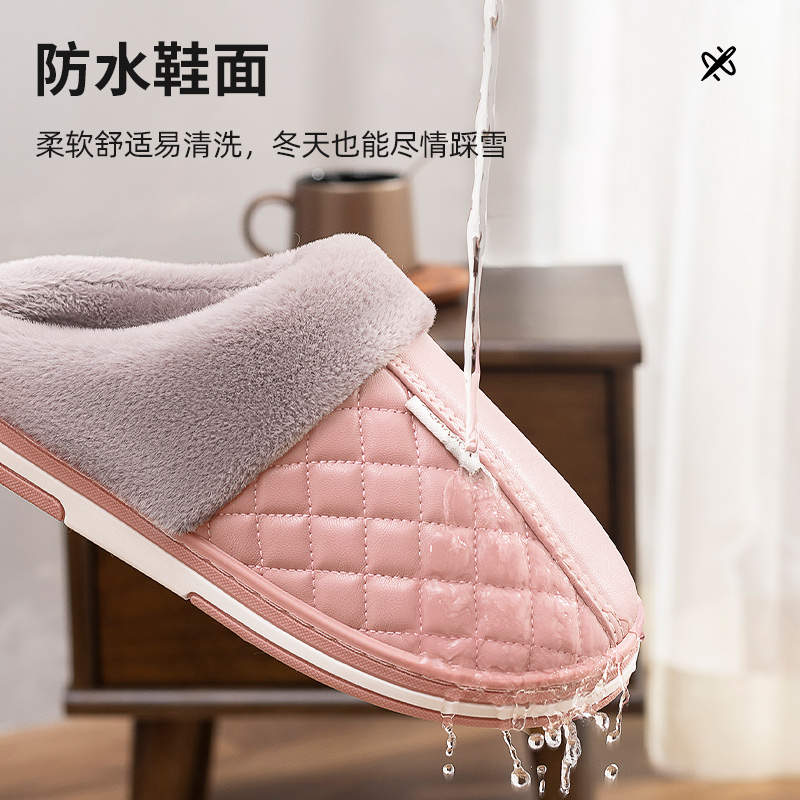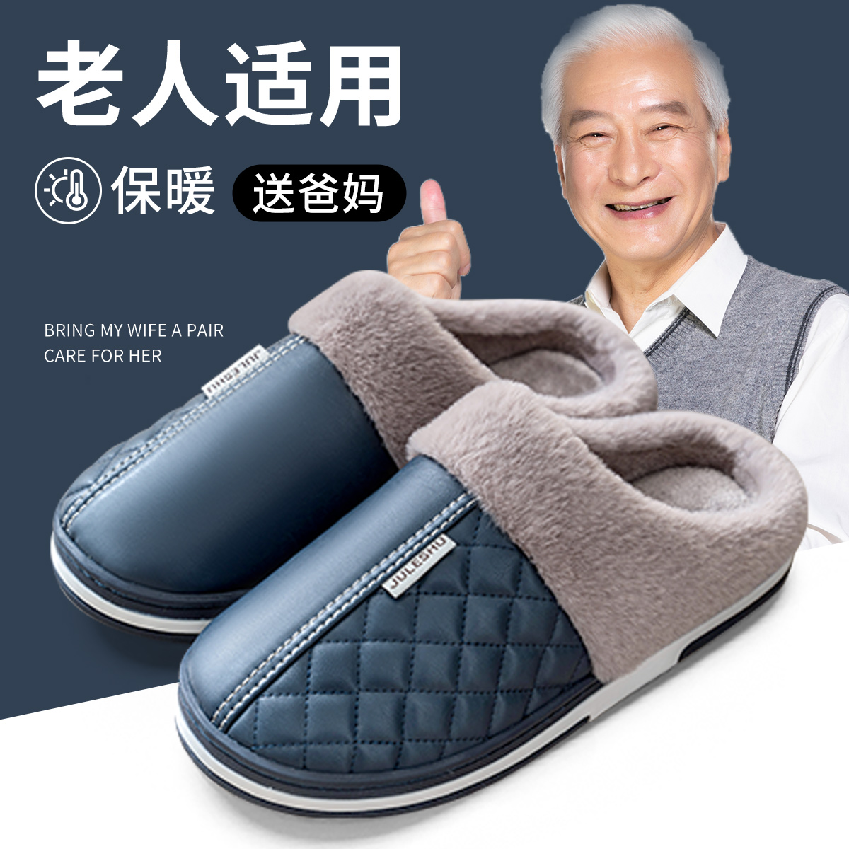 大码老人防水棉拖鞋男款2025新款室内家居毛绒保暖皮拖鞋女秋冬季