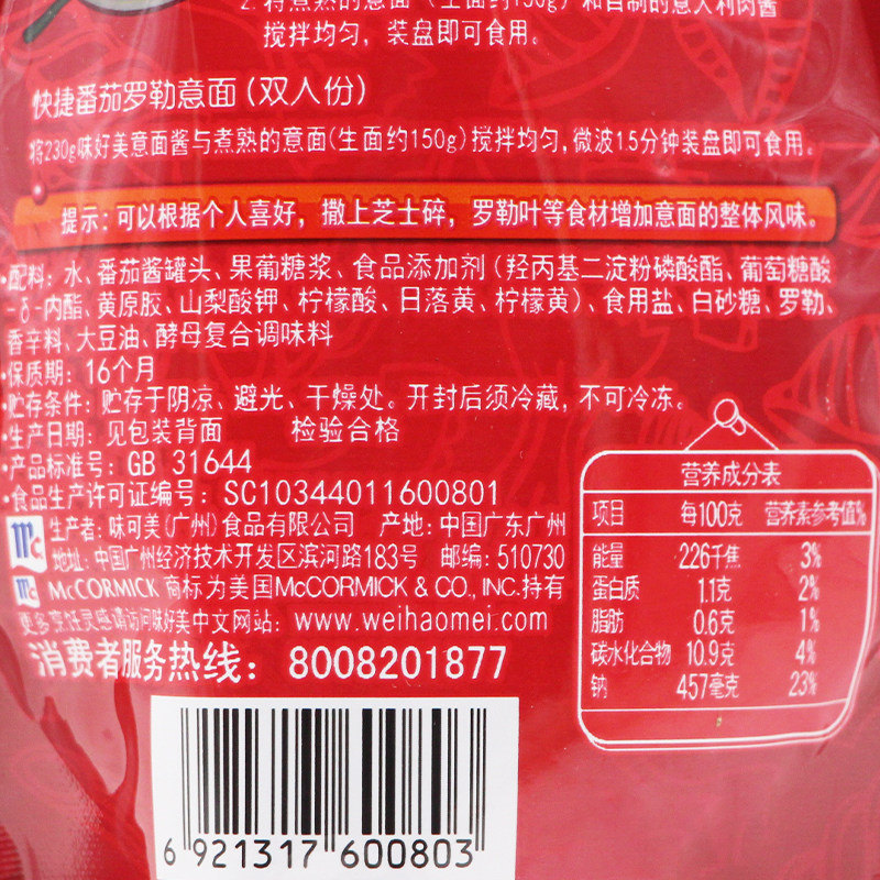 味好美意大利面酱番茄和罗勒风味230g挤挤装番茄肉酱披萨酱意粉酱