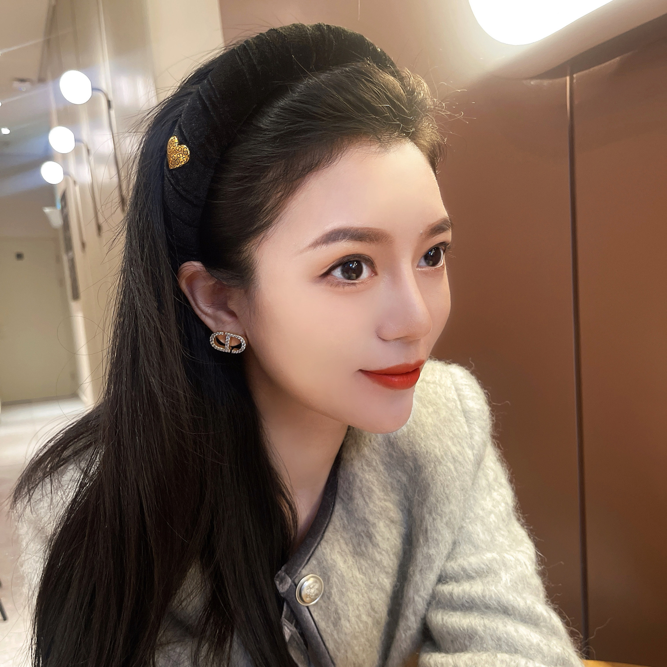 杨杨babytime 增高颅顶up!缠绕黑丝绒爱心时尚气质海绵发箍轻奢