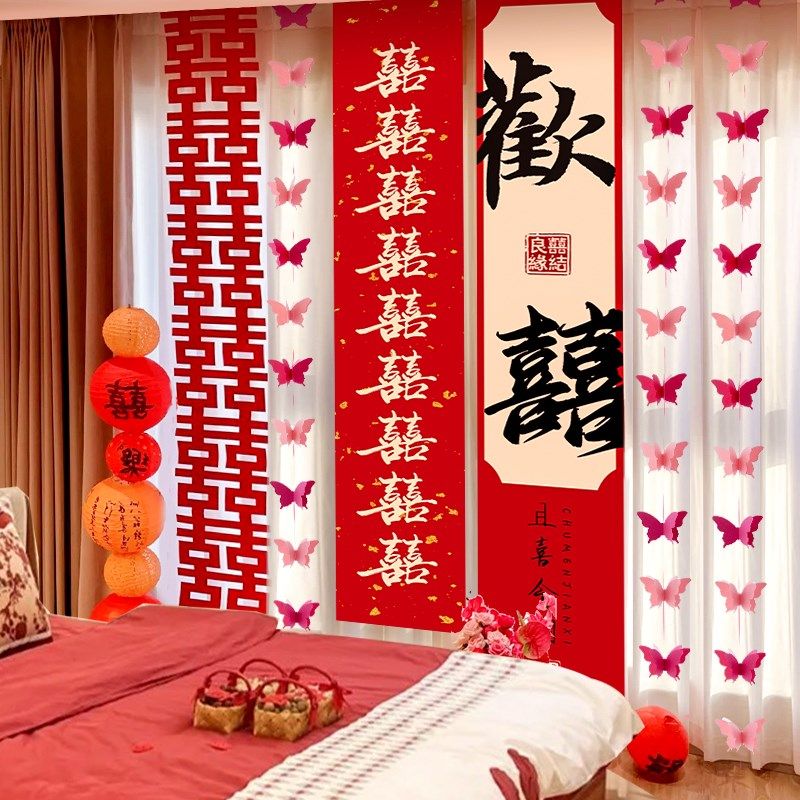 结婚布置婚房窗帘装饰女方卧室男方新房酒店客厅婚礼套装用品大全