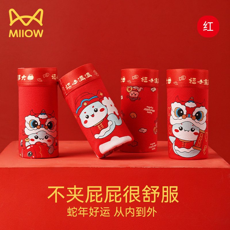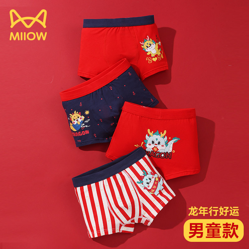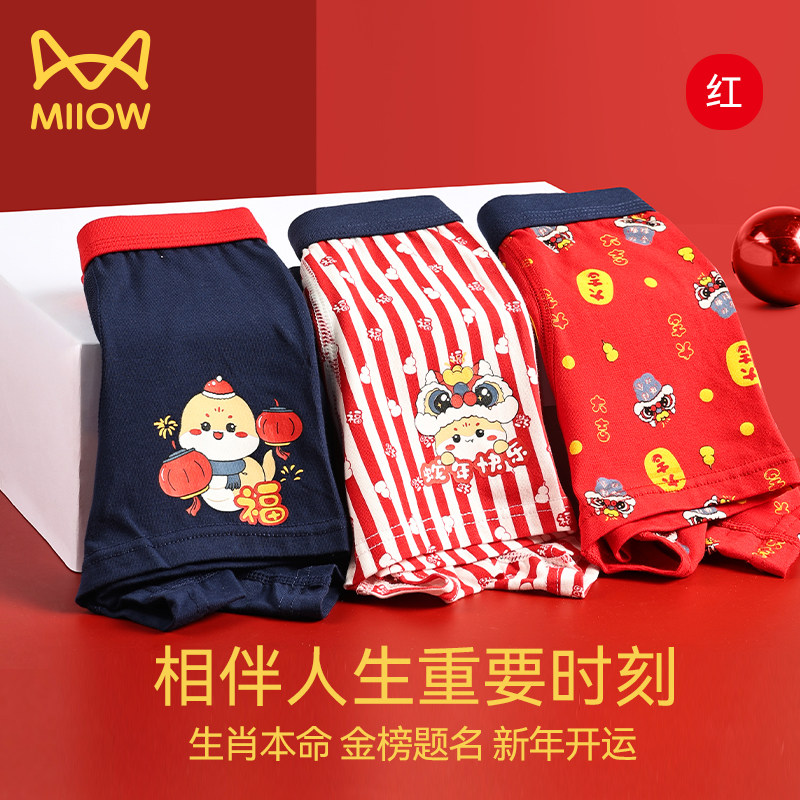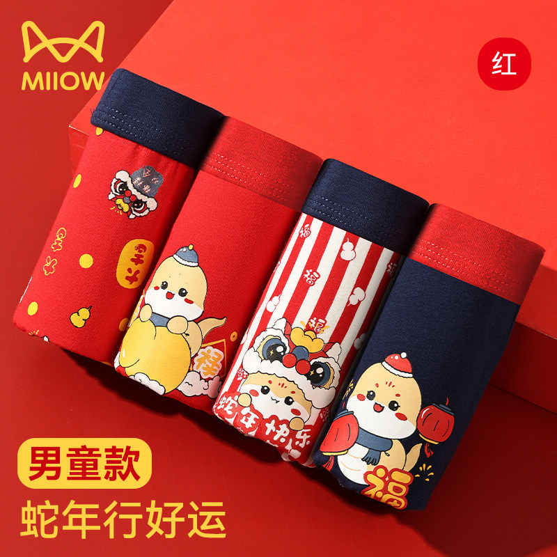 猫人男童本命年红内裤儿童属马年纯棉12岁大童男孩四角红色短裤