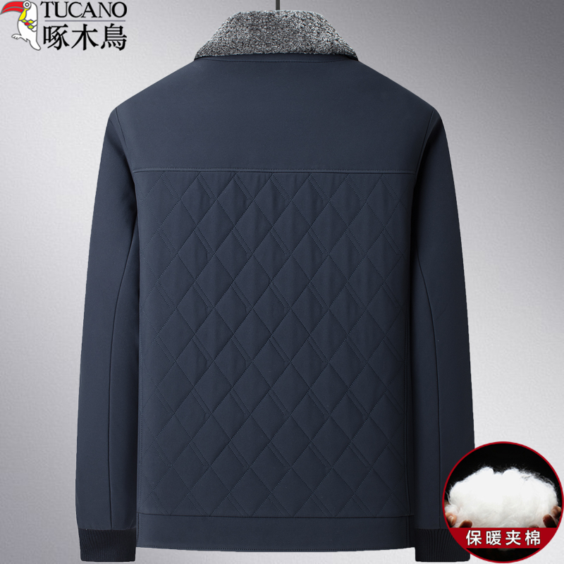 啄木鸟中年男士夹棉外套轻薄二棉衣服秋冬季爸爸装中老年人夹克衫