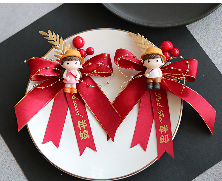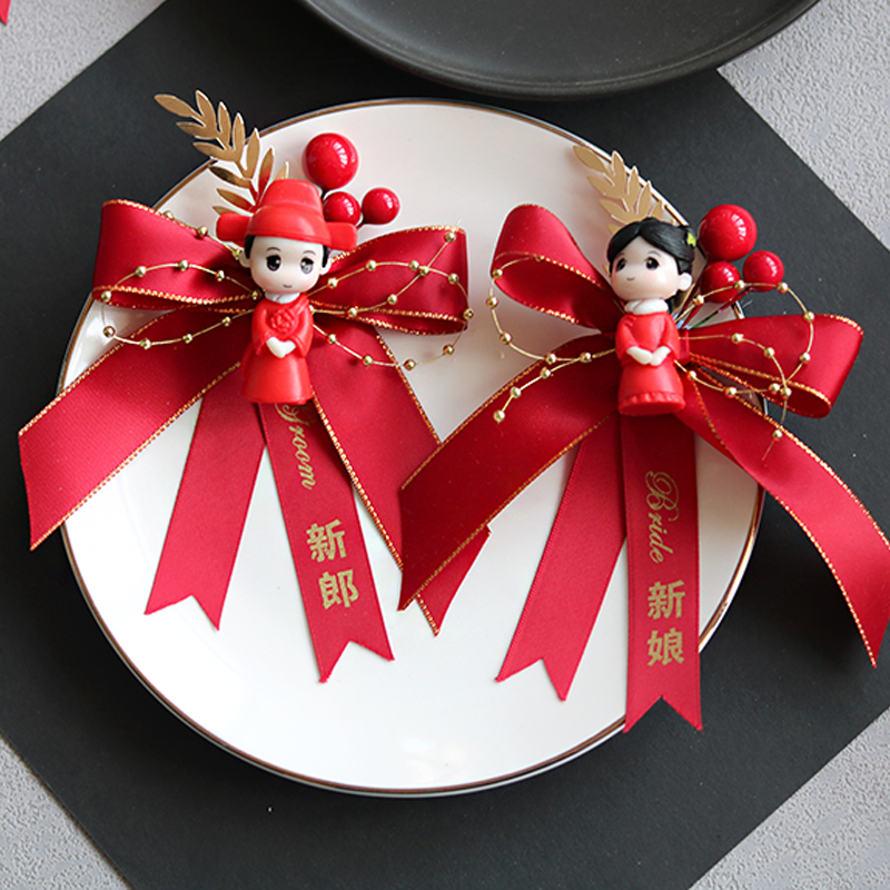 红色蝴蝶结爷爷奶奶卡通玩偶结婚胸花创意婚礼新郎新娘伴手礼襟花