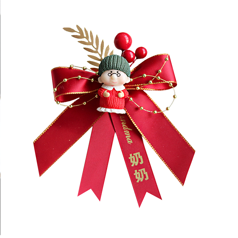 红色蝴蝶结爷爷奶奶卡通玩偶胸花