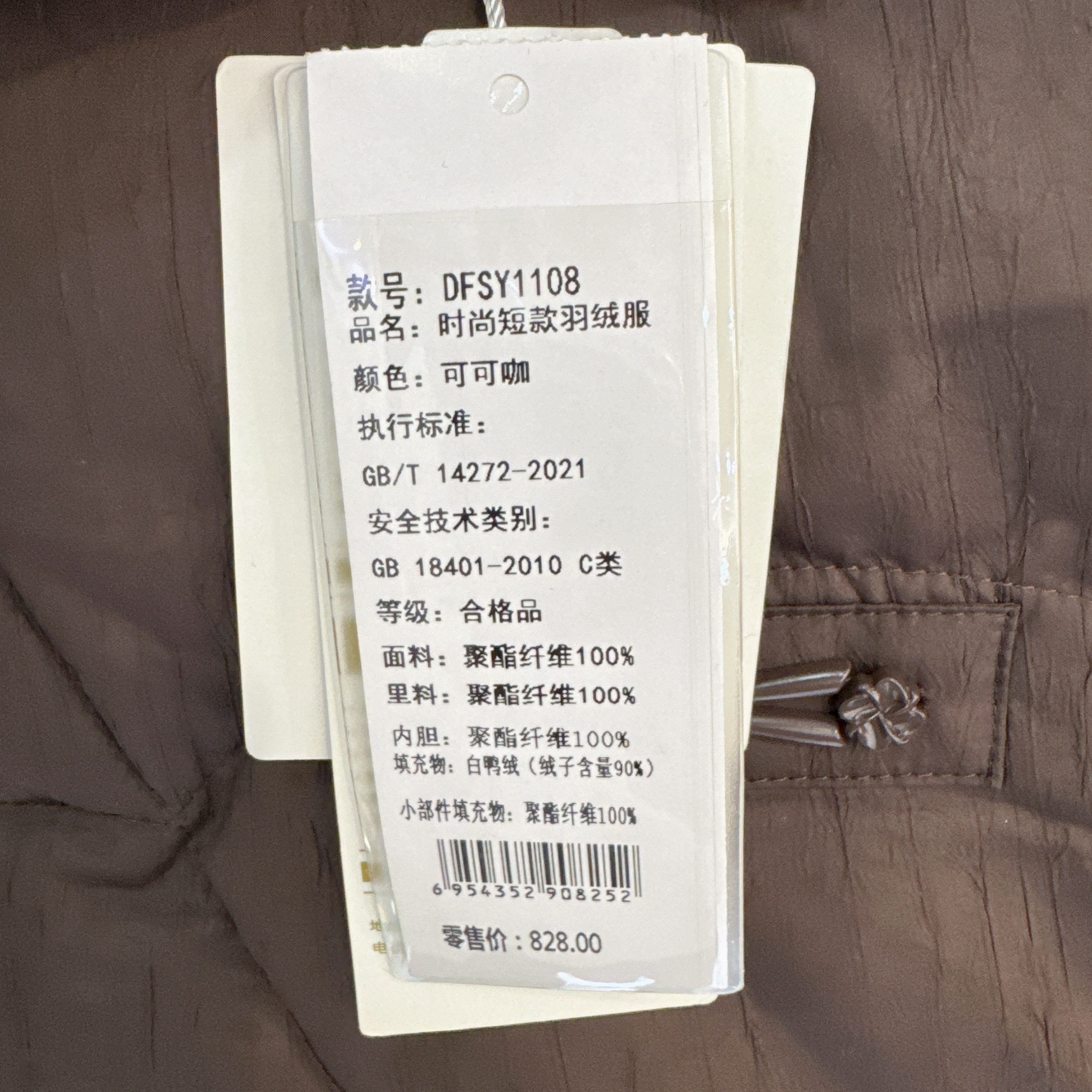 DFSY1108时尚羽绒服女立领90白鸭绒显瘦气质2025冬季专柜正品