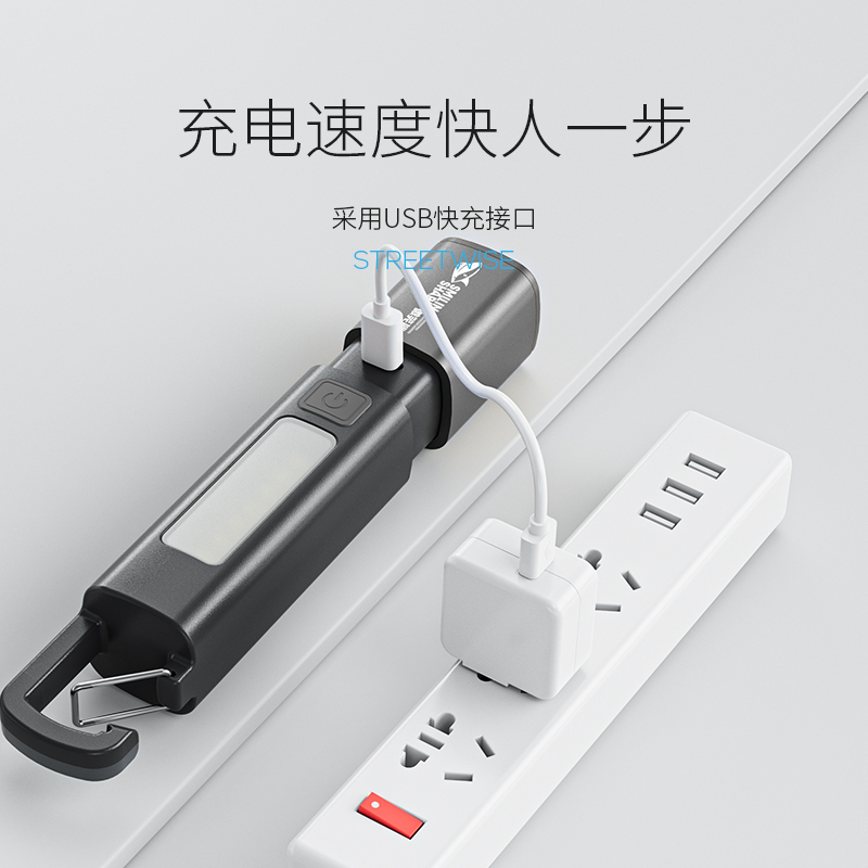 手电筒小型便携强光变焦远射超亮充电户外应急停电超长续航可挂式