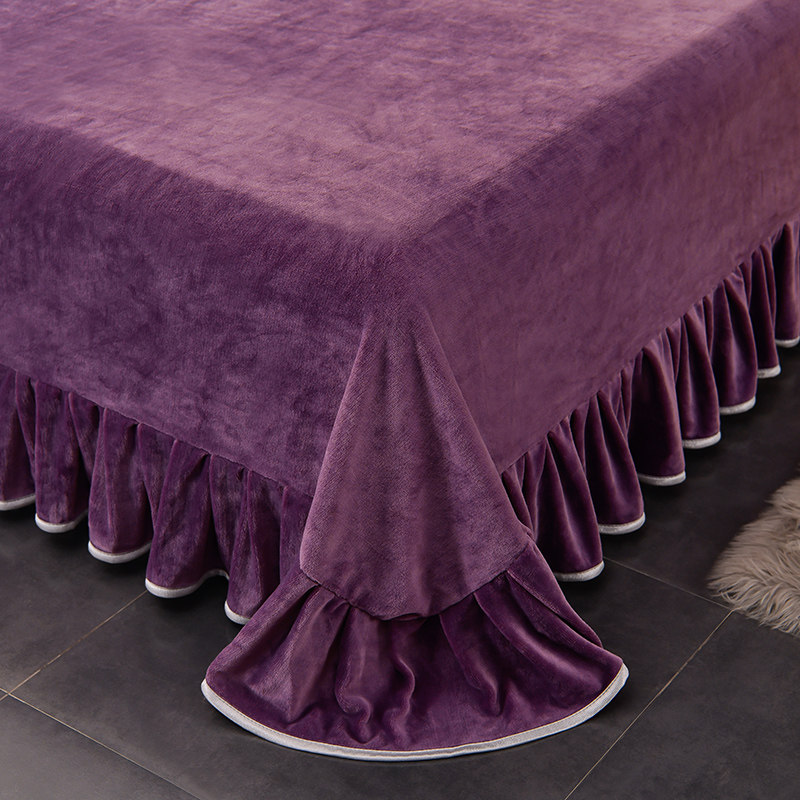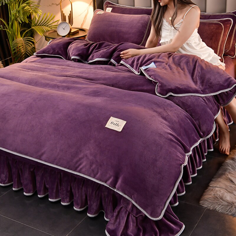 加绒牛奶绒四件套冬季双面加厚法莱法兰珊瑚绒被套纯色床上用品紫