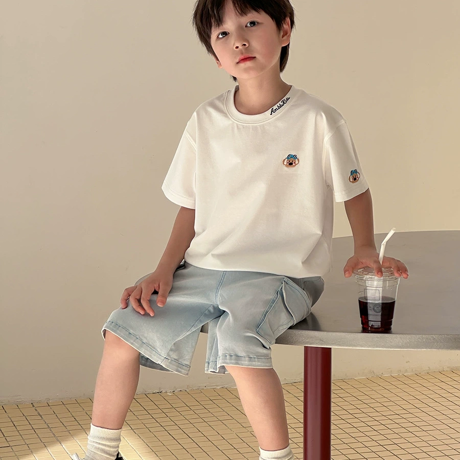 Yumi妈 儿童卡通刺绣短袖T恤中大童气质冰感棉高弹上衣潮25C134