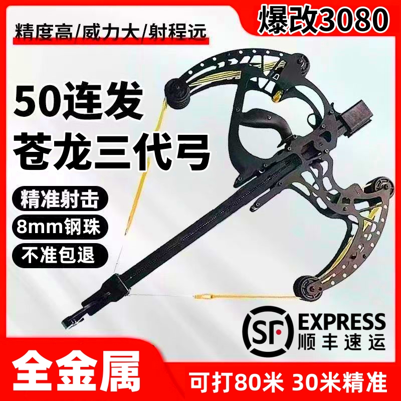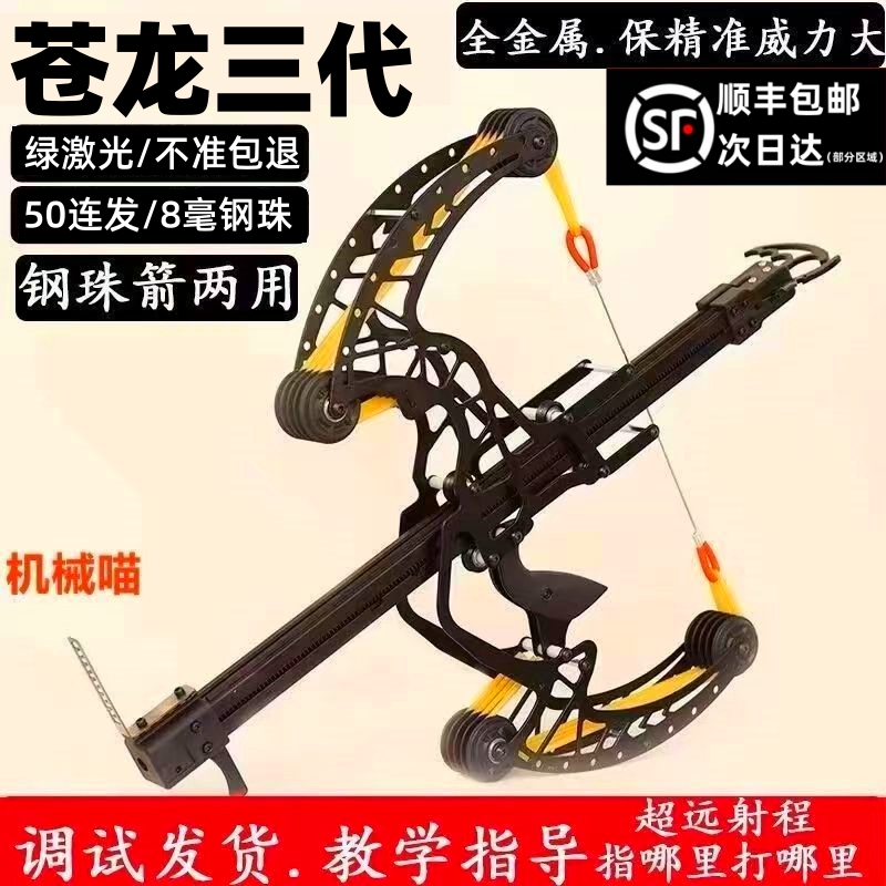 枪式弹弓苍龙三代高精度弹弓专用弹弓瞄准弹弓全金属50连发复合弓