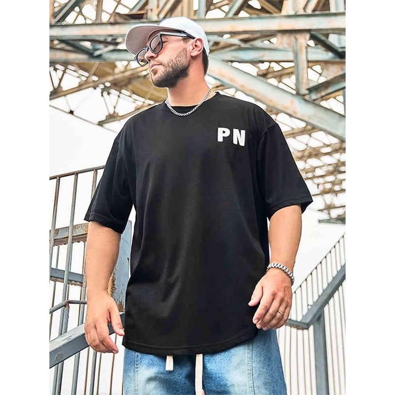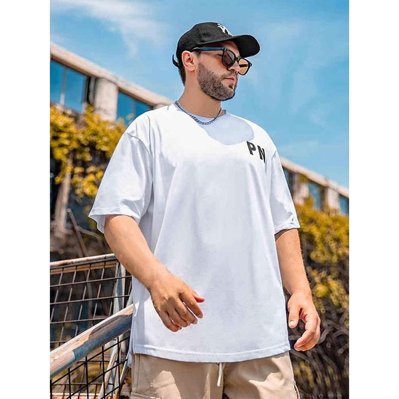 大码男装夏季胖子字母印花圆领短袖T恤五分袖加肥加大宽松体恤衫