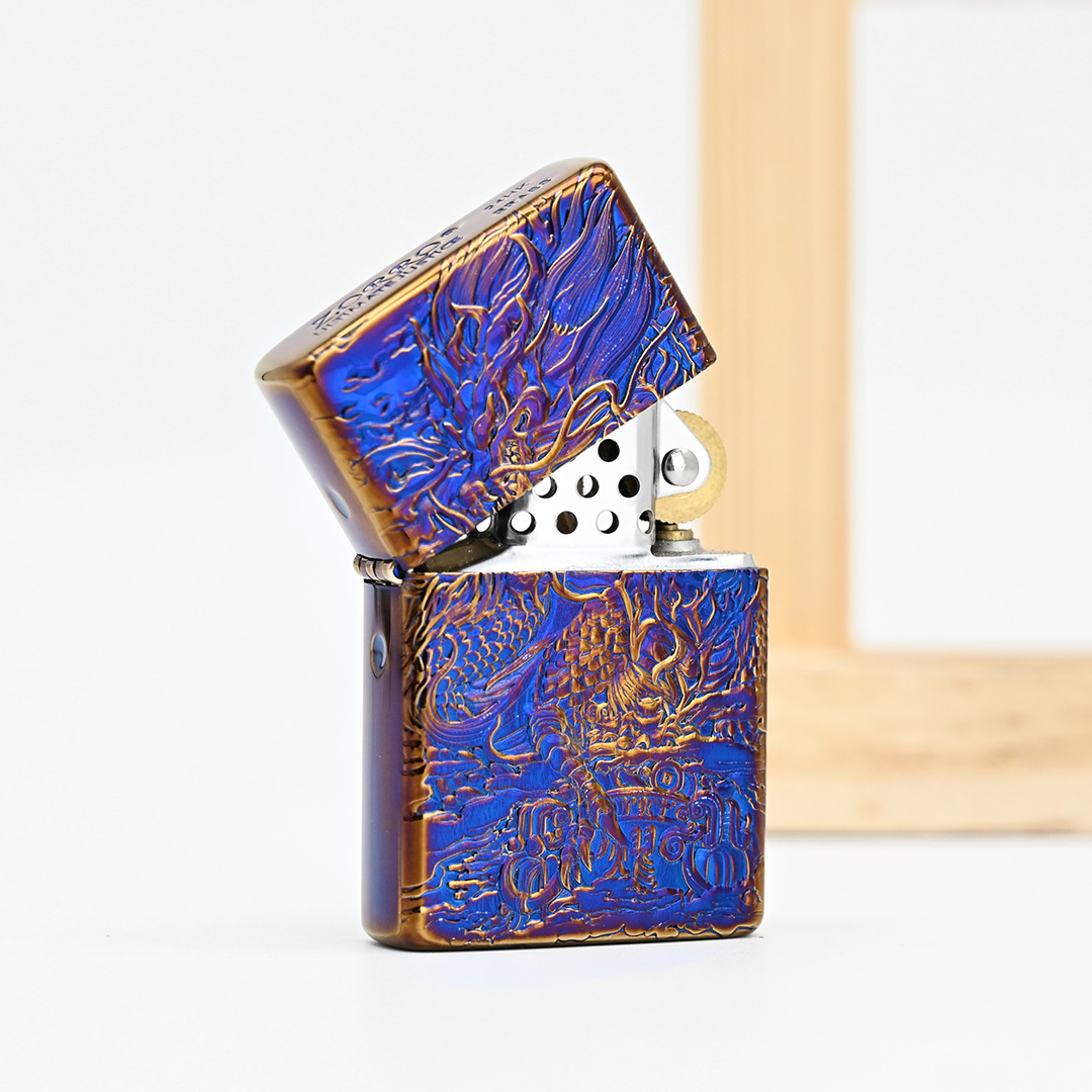 ZORRO佐罗煤油防风打火机905熏蓝神龙献宝精雕送男士创意礼物