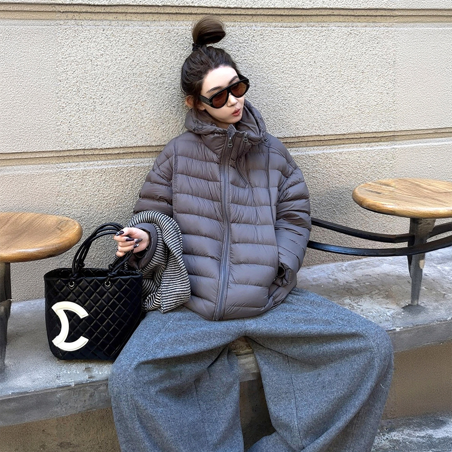 大码女装胖mm灰色连帽排骨外套女新款加厚保暖深冬独特超好看棉服