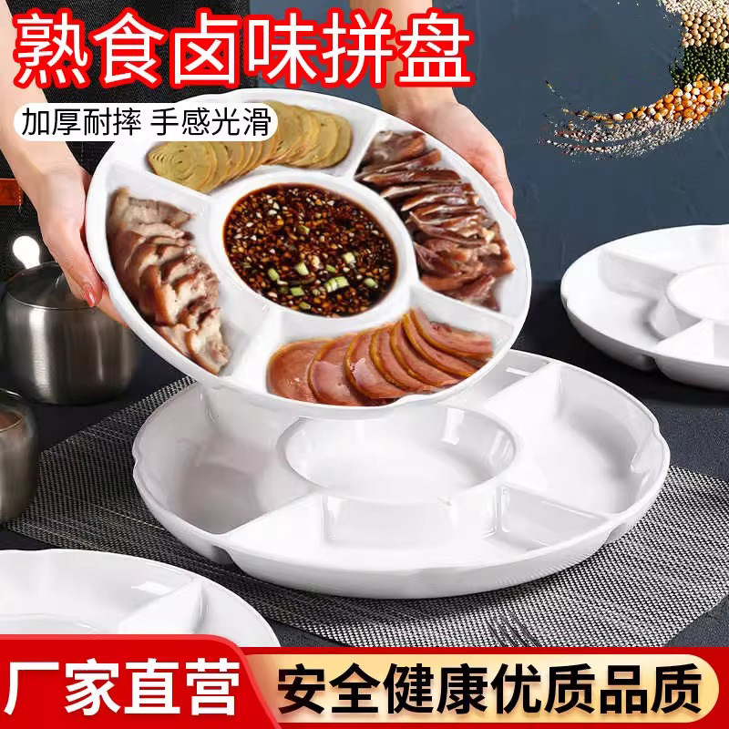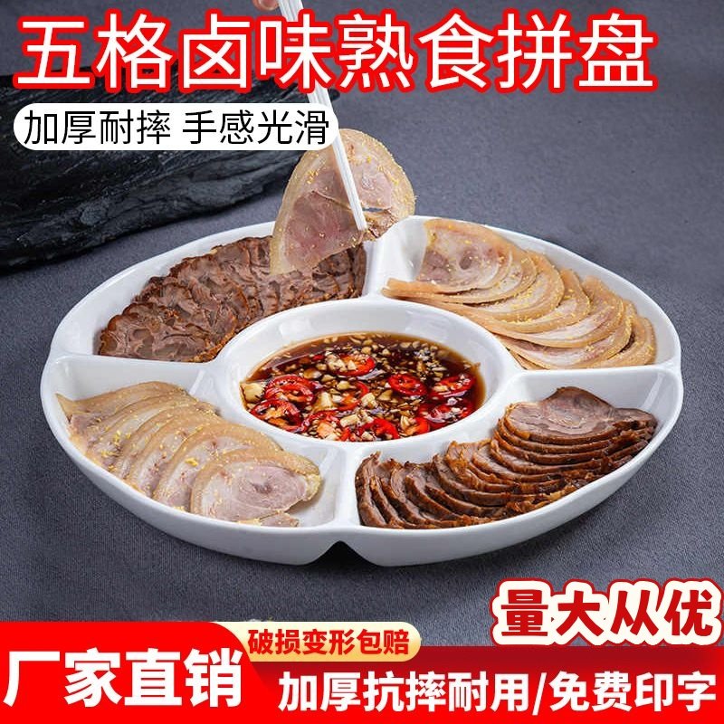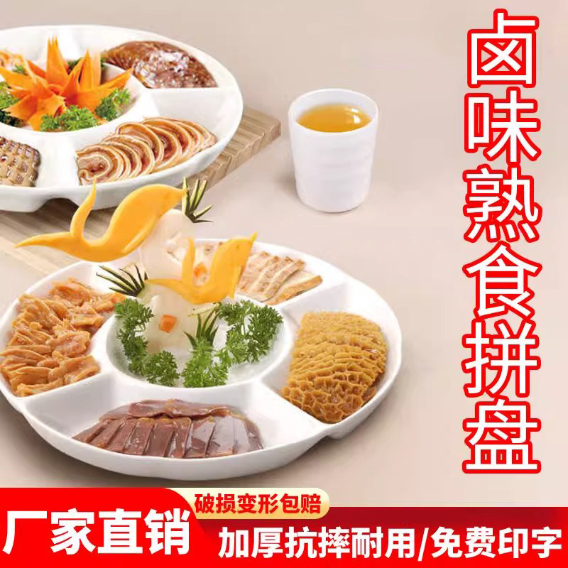 五格卤水卤味卤菜拼盘密胺小吃干果分格商用凉菜盘商用鱼生专用盘