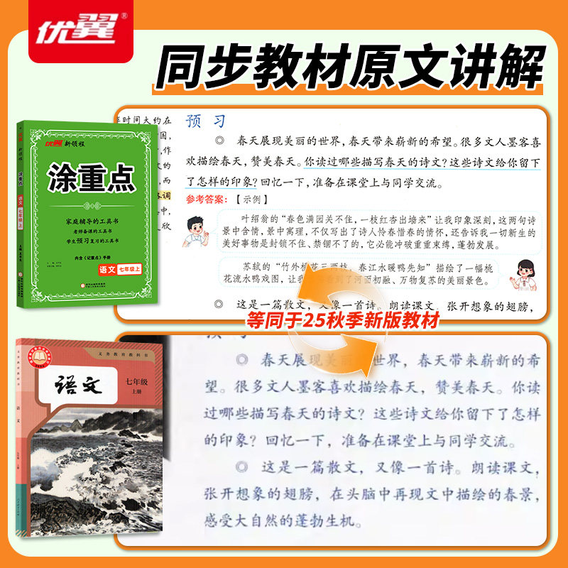 2026春涂重点七年级7八8年级上下册人教版语文同步解读教材全解预习复习一本通初中知识基础知识手册大盘点课堂笔记优翼中学教辅书