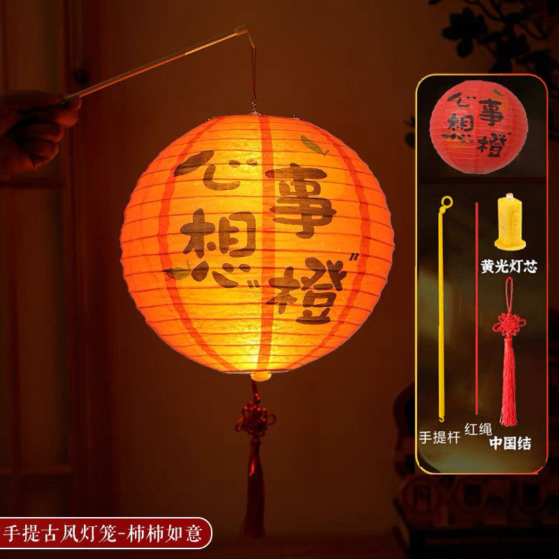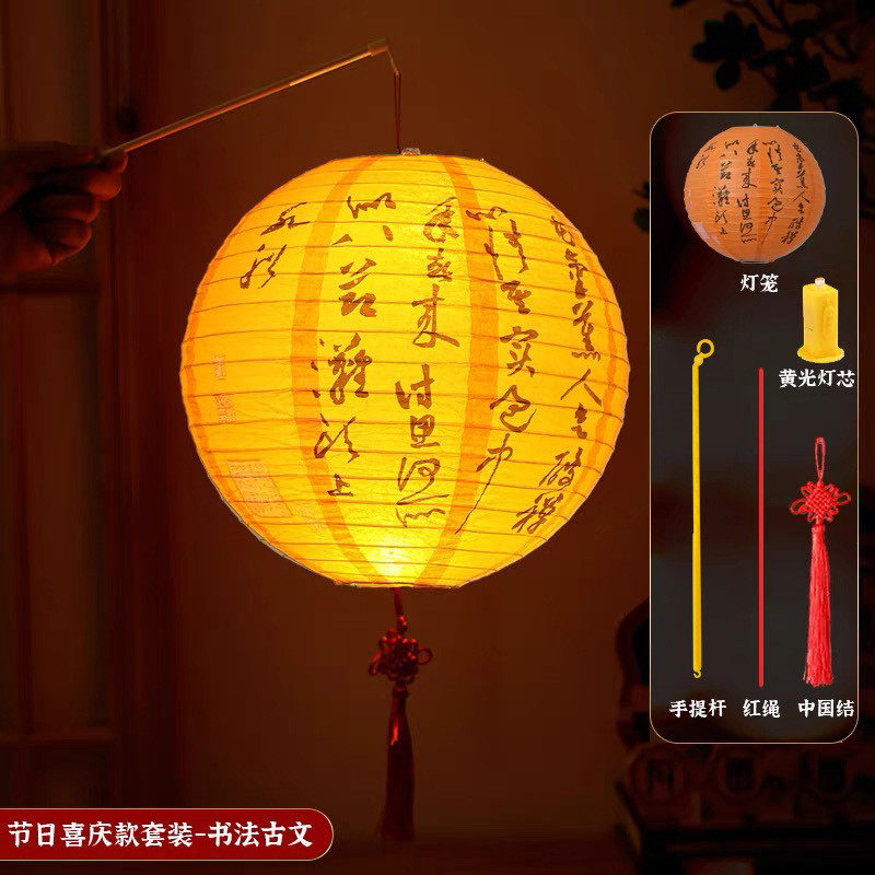 新年春节装饰古风折叠手提发光福字纸灯笼幼儿园diy手工花灯挂件