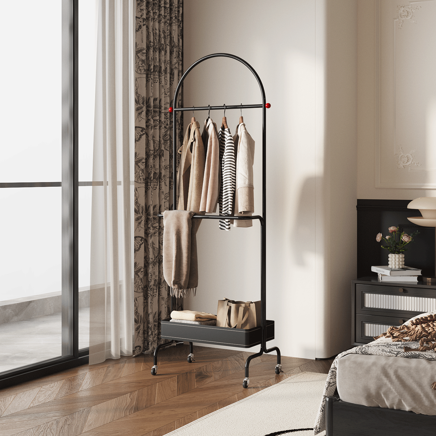 2025年新款法式奶油风家用卧室落地式挂衣服金属衣帽架移动挂衣架