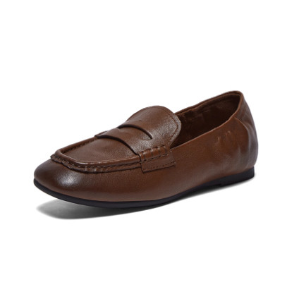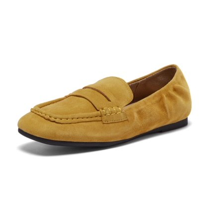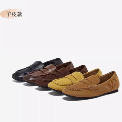专柜正品百思图2026春新款女鞋绒面羊皮乐福鞋英伦豆豆鞋UXE01AA6