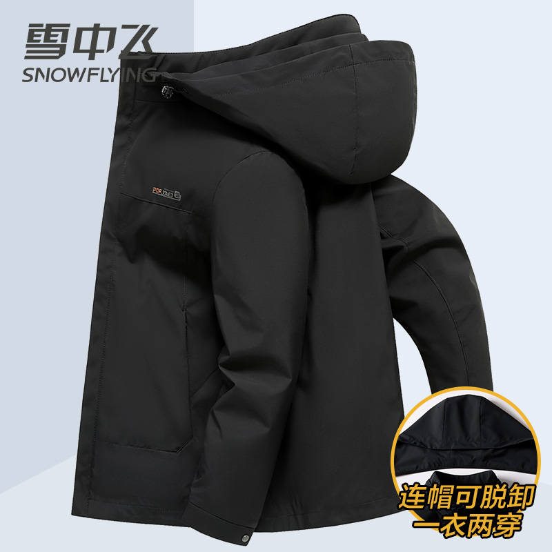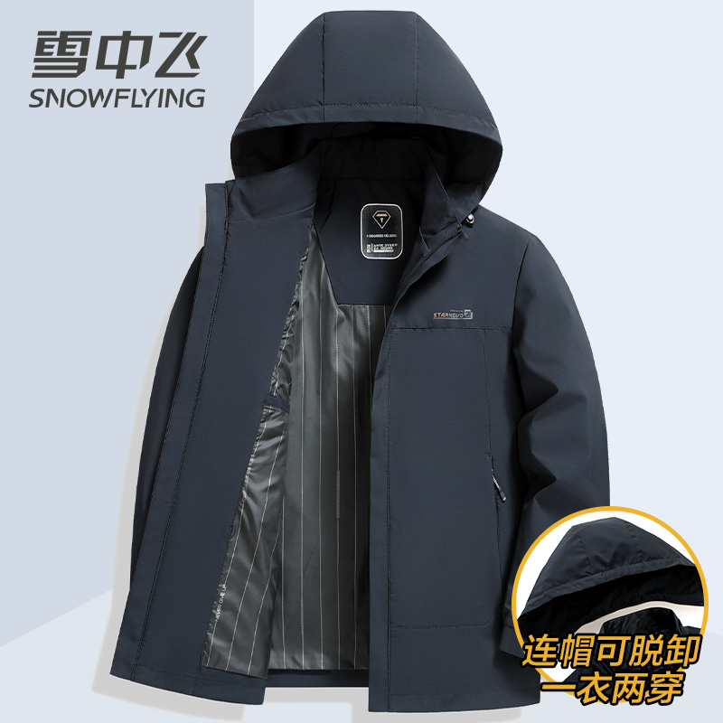 雪中飞男士夹克外套2025秋季新款可脱卸帽子中年爸爸装春秋季上衣