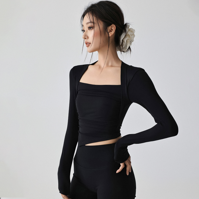 假两件瑜伽服女秋冬季带胸垫显瘦普拉提训练健身长袖T恤瑜伽上衣
