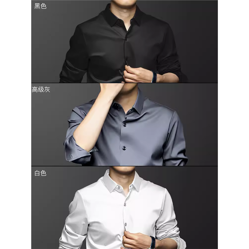巴黎高级感桑蚕丝衬衫男士修身长袖休闲商务高档衬衣抗皱免烫上衣