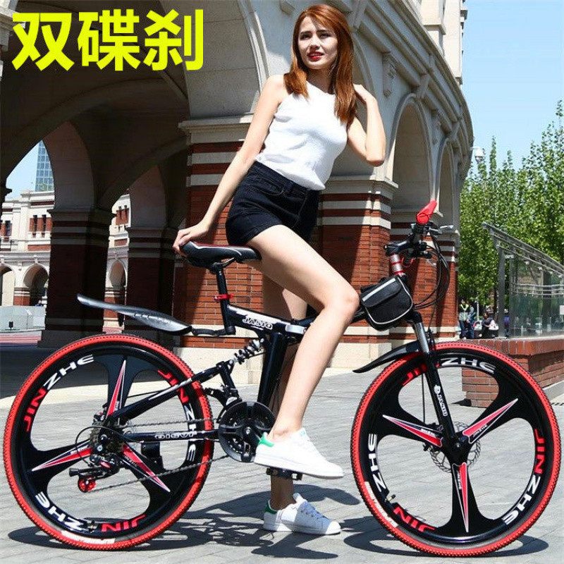 【铝合金超轻折叠自行车】双避震双碟刹软尾速降山地车变速公路赛