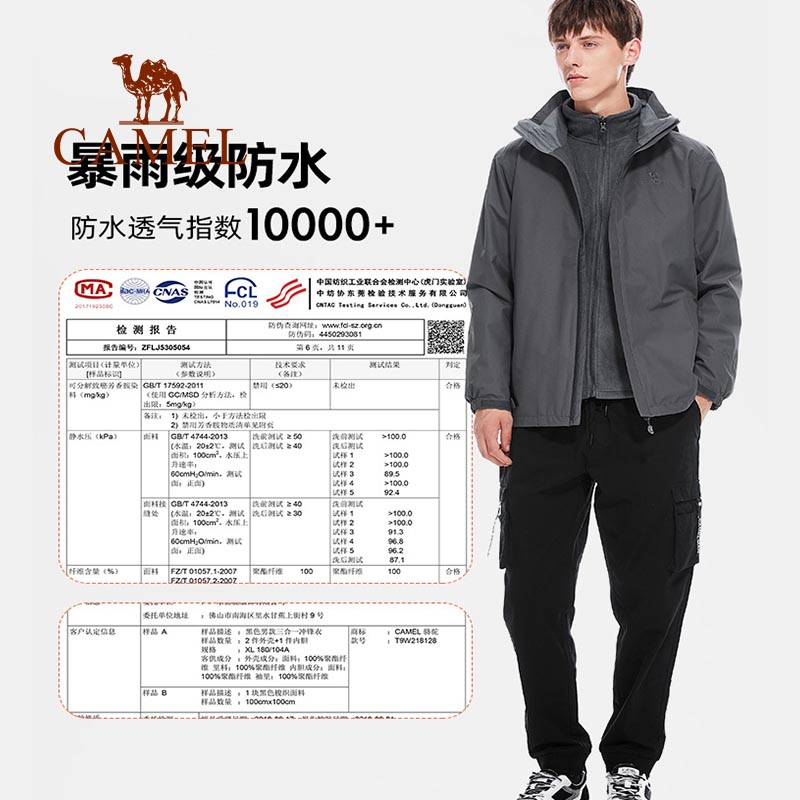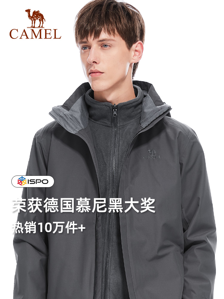 骆驼冲锋衣三合一男女装冬季防风外套加绒加厚可拆卸户外登山服潮