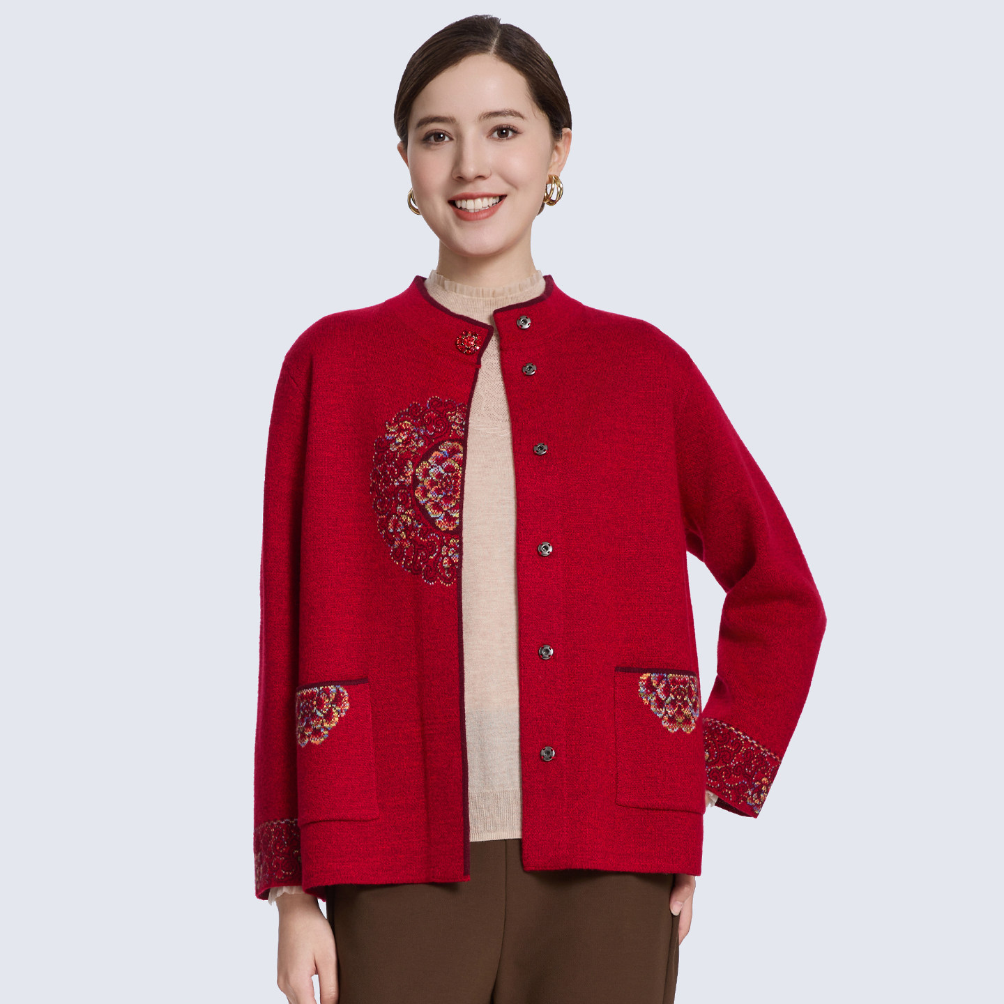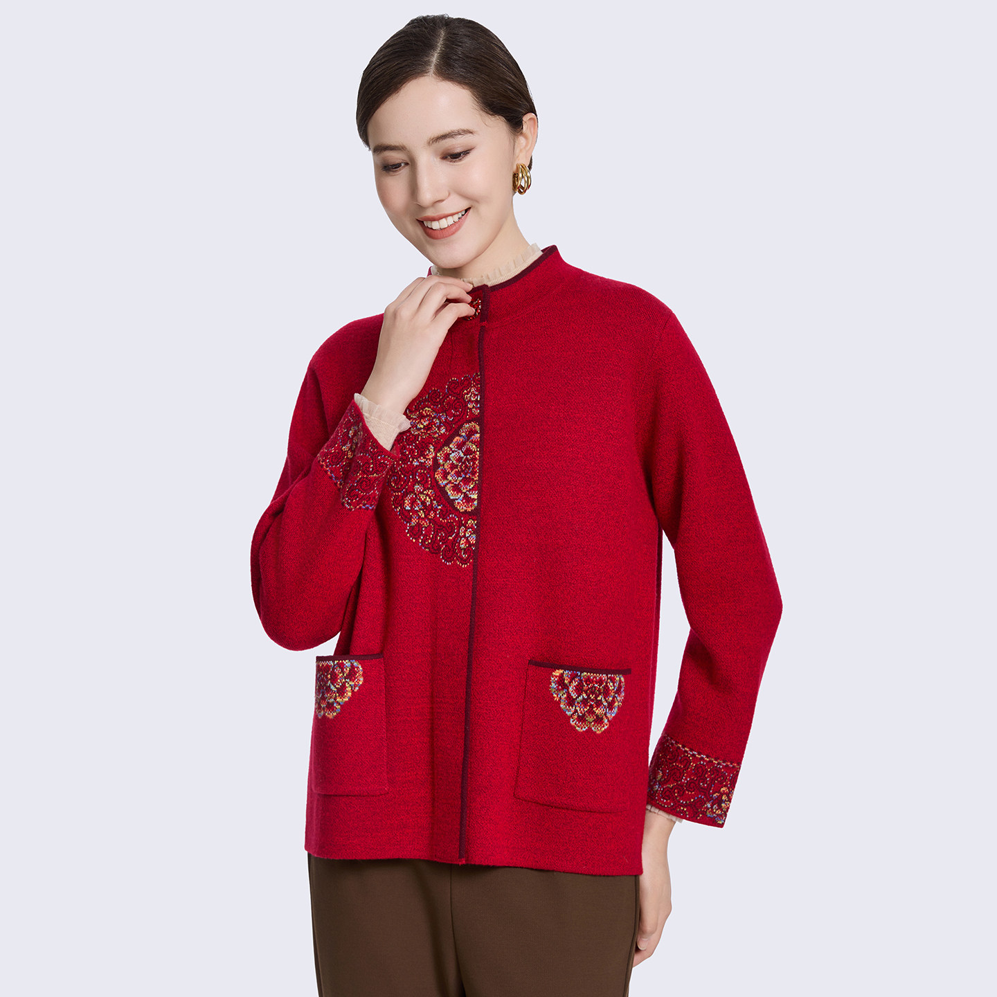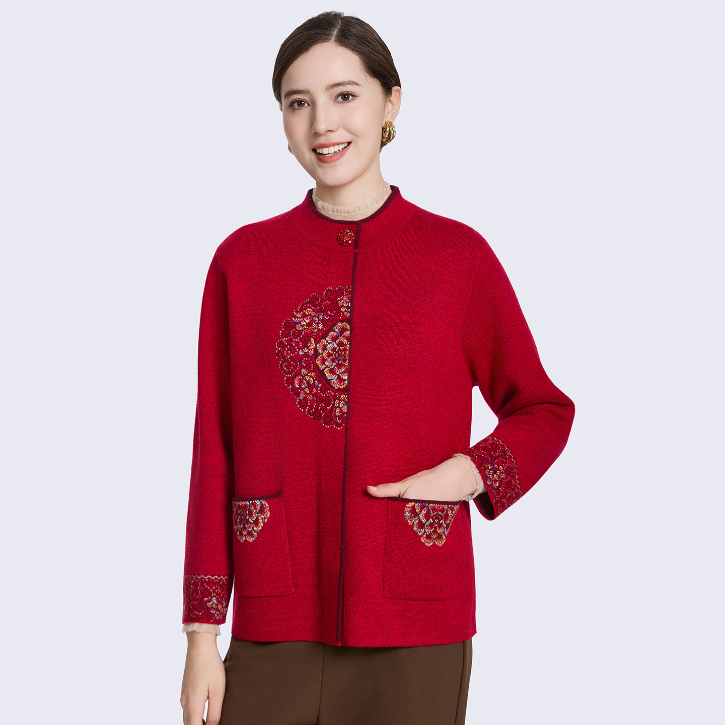 【新年装】赏心岁月中老年妈妈针织开衫洋气立领绣花上衣奶奶衣服