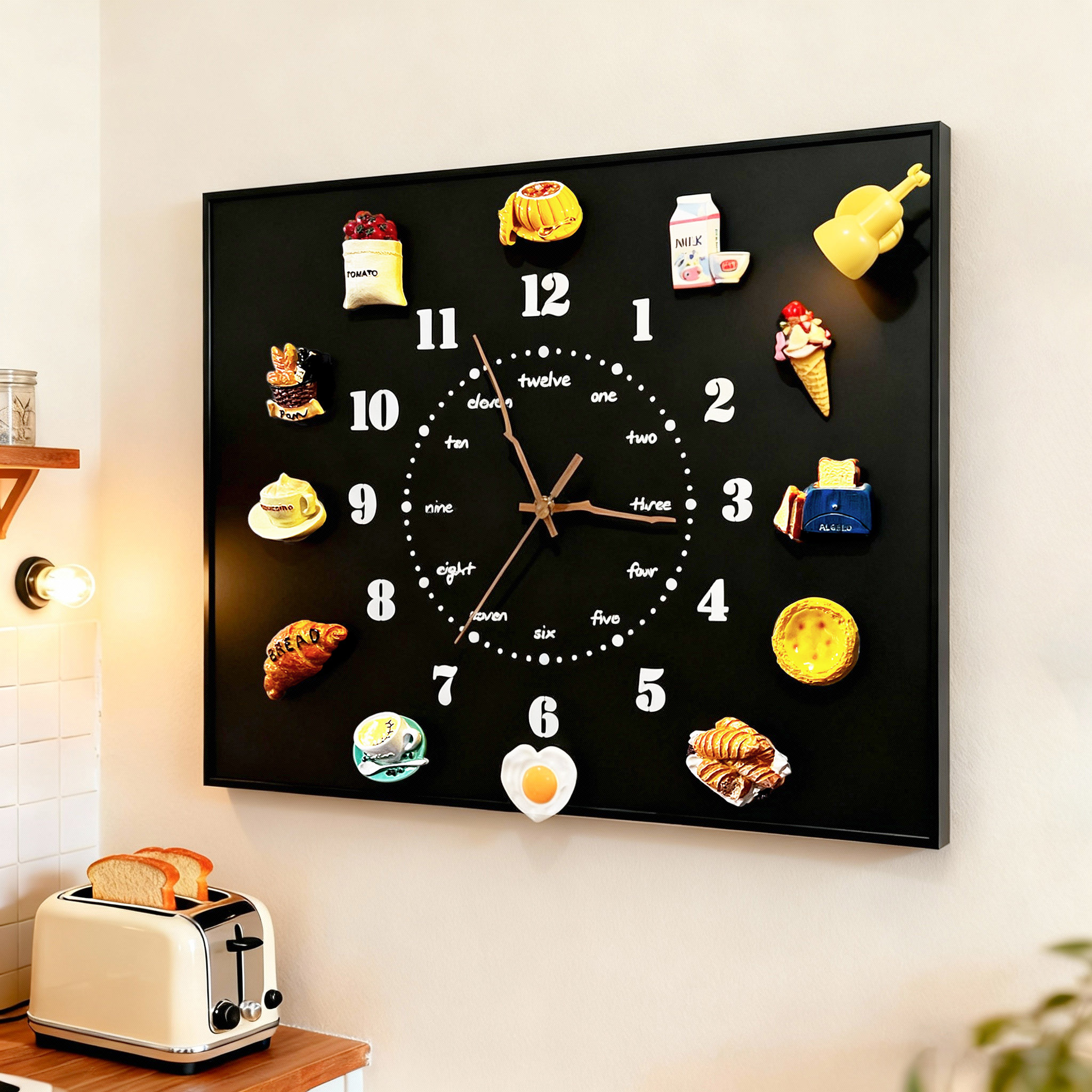 电表箱装饰遮丑画卡通手办收纳挂钟现代简约钟表家用电源开关盖板