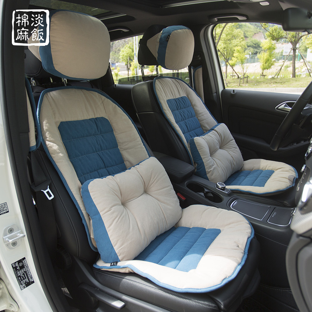 『小清新』棉麻汽车头枕腰枕靠枕坐垫护肩套装 棉麻四季通用
