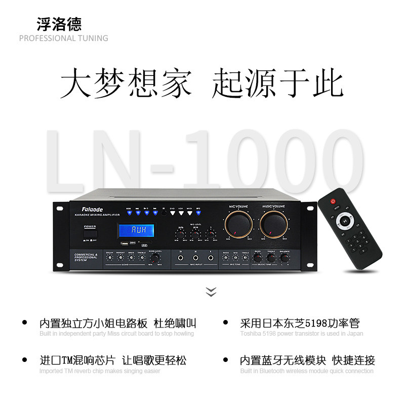 浮洛德LN-1000卡包功放机大功率专业蓝牙KTV家用HIFI均衡混响增益