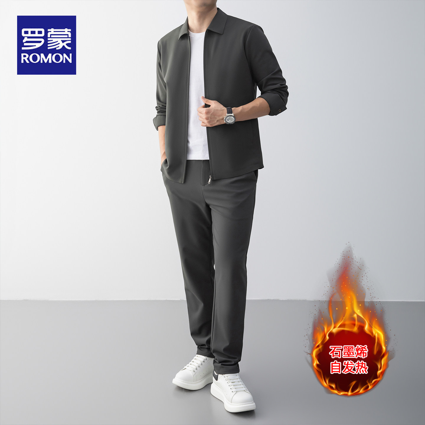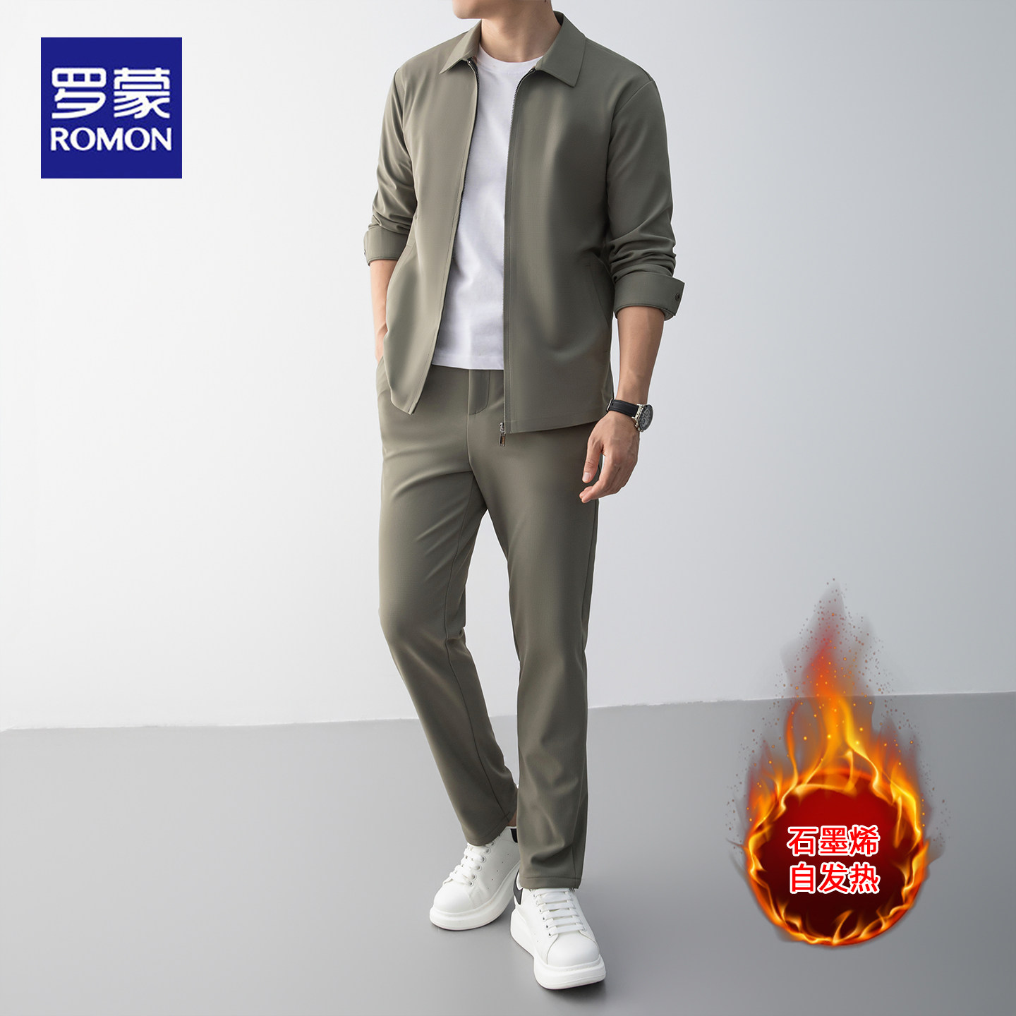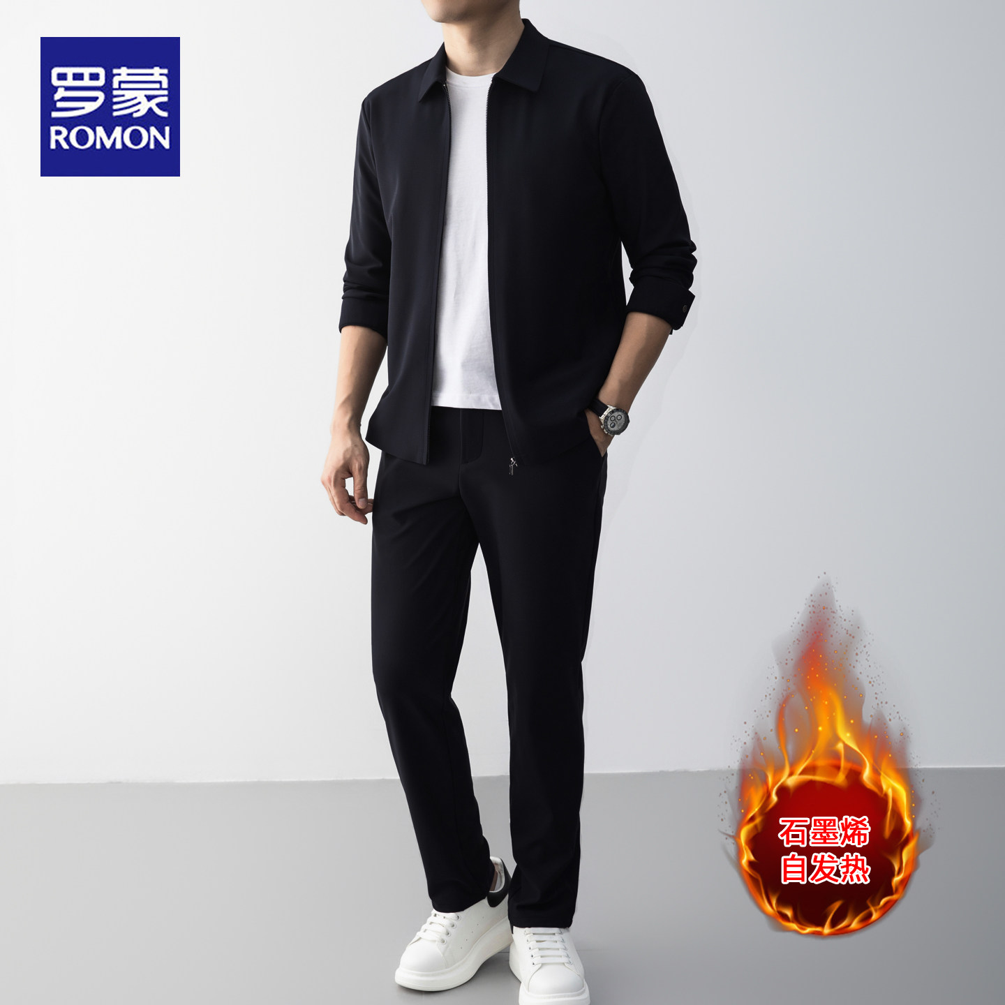 罗蒙休闲运动套装男士2025新款春秋季商务休闲长袖西服两件套男装