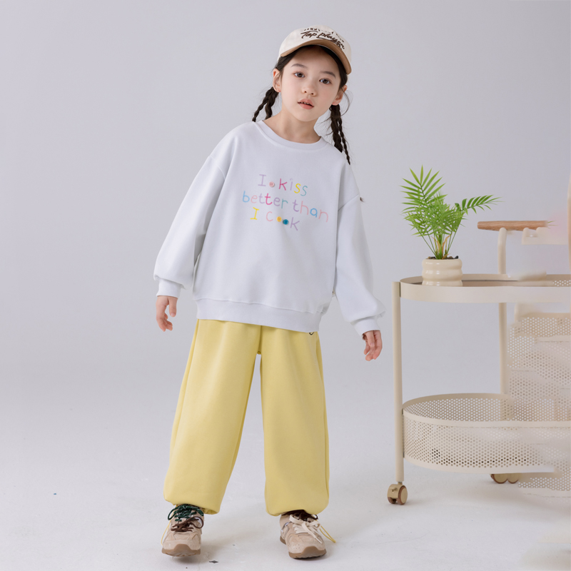 哈依鲁春秋季新款女童圆领卫衣儿童中大童宽松时尚打底衫