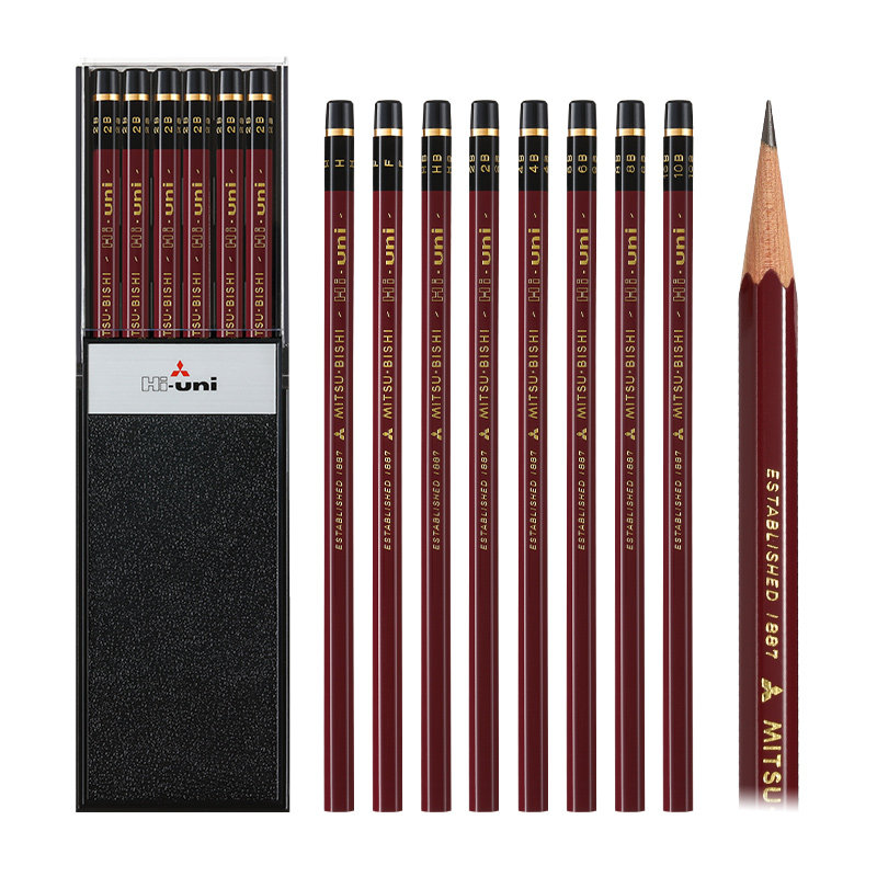 日本三菱红杆铅笔HI-UNI素描铅笔套装三菱进口2B石墨铅笔考试涂卡