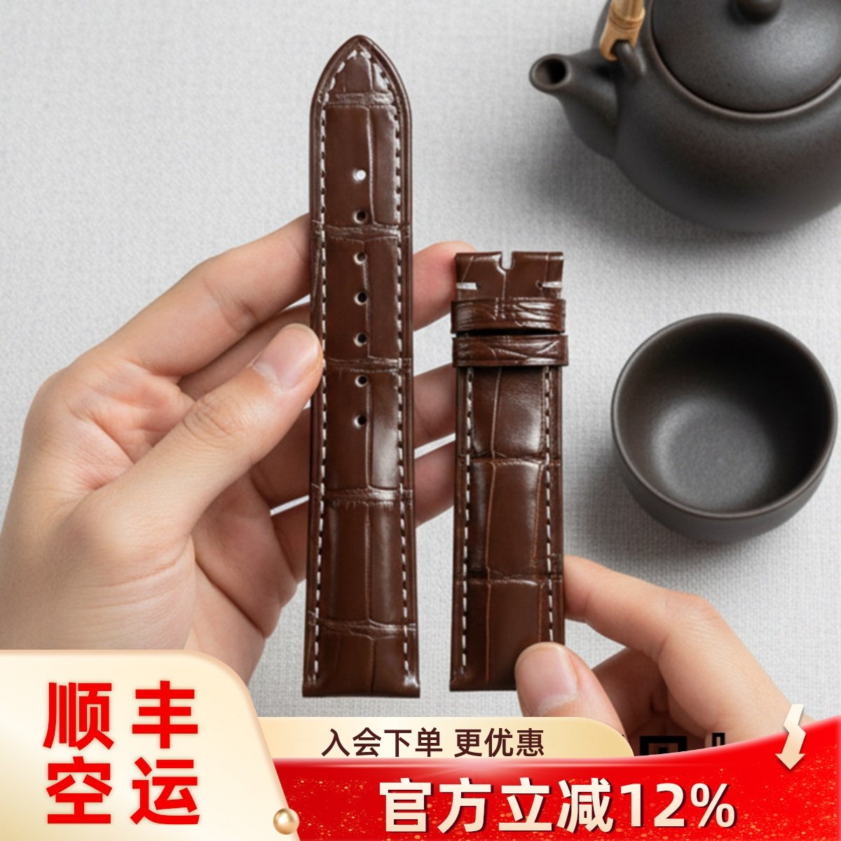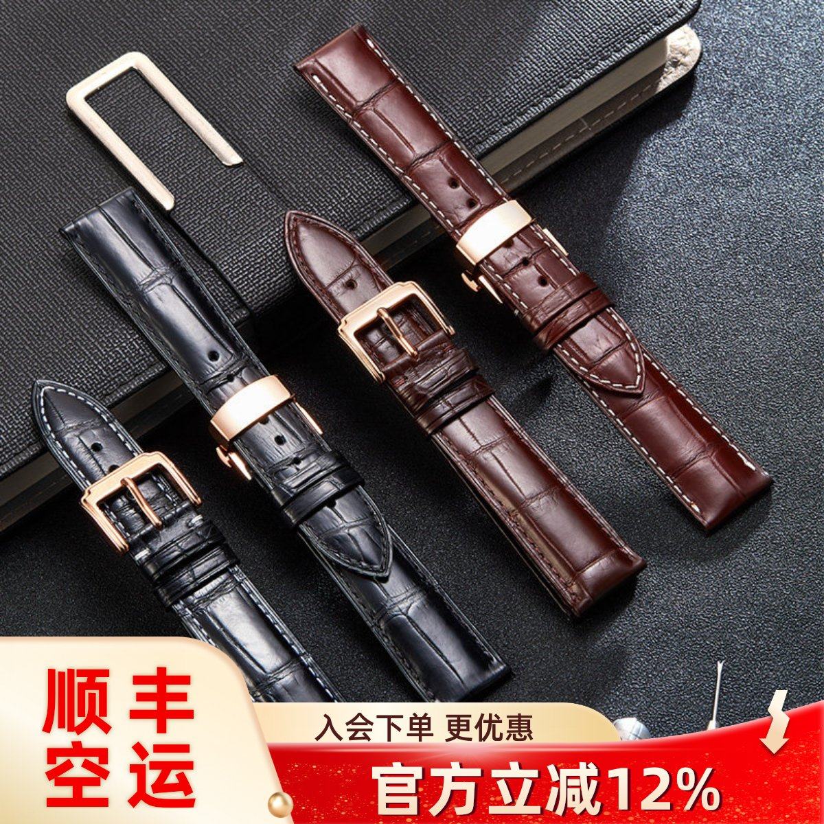 十瑞鳄鱼皮表带男适用浪琴名匠天梭力洛克蝴蝶扣美度真皮手表带女