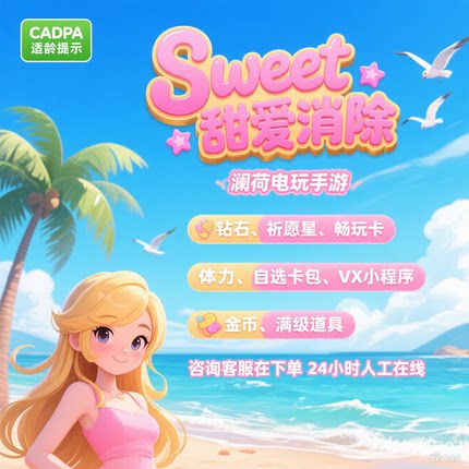 甜甜爱消除无限钻石无限体力无限星星自选卡包小程序游戏保留进度