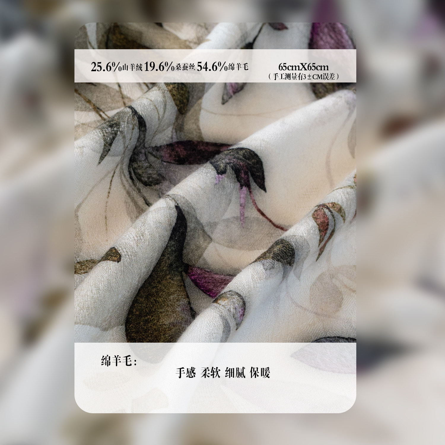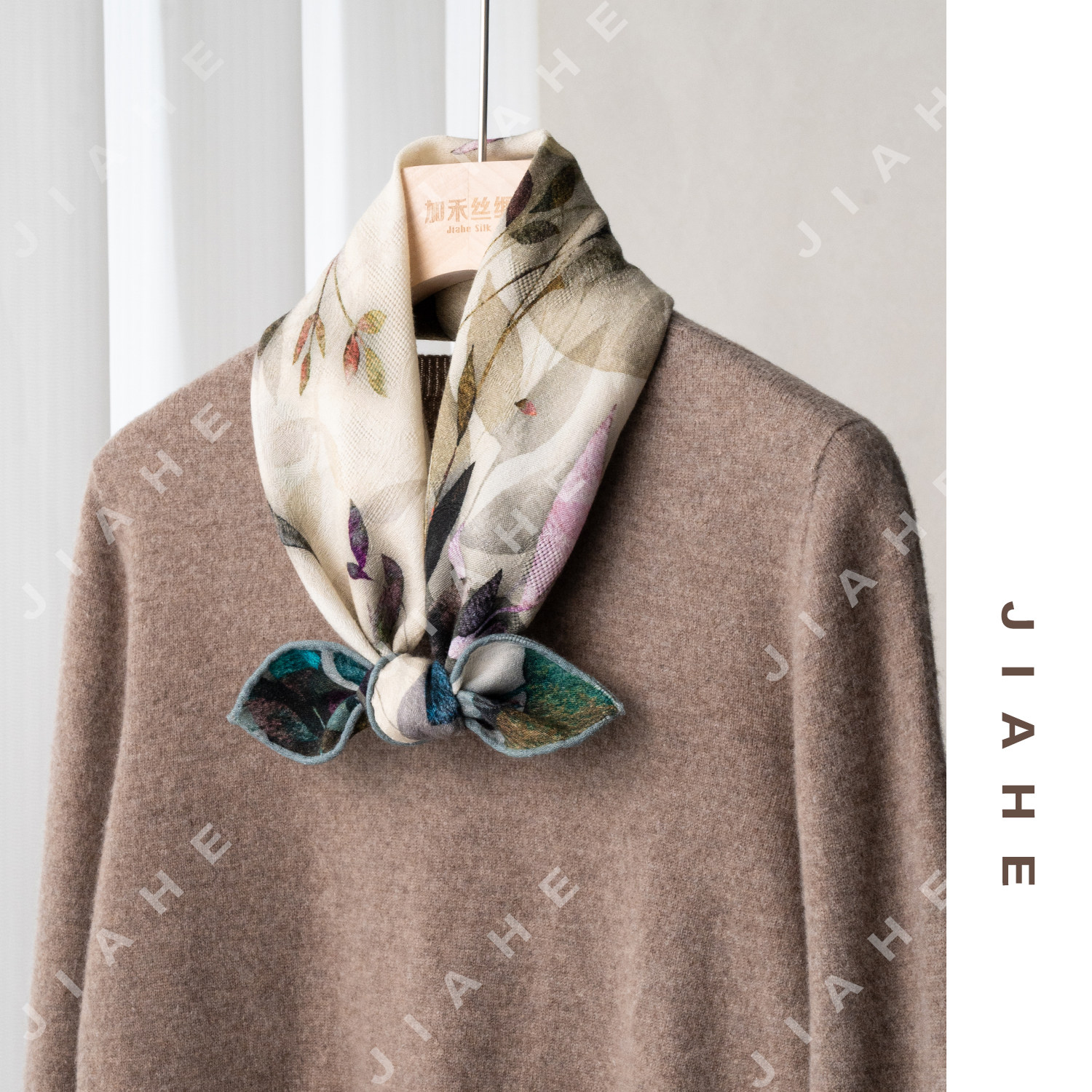 JIAHE加禾【叶语 】 重磅新款双面异色丝羊绒女士围巾丝巾65*65