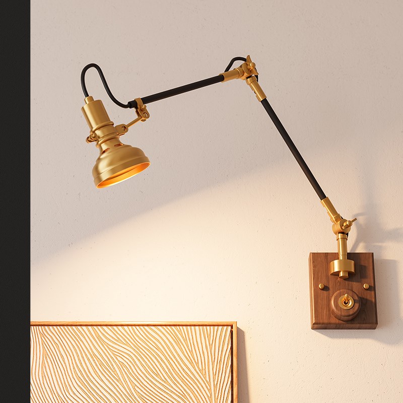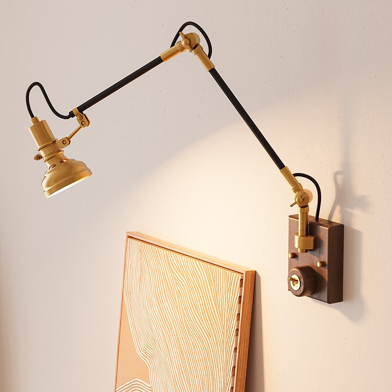 黑胡桃木摇臂灯阅读休闲民宿复古黄铜壁灯墙灯挂式伸缩灯侘寂风灯
