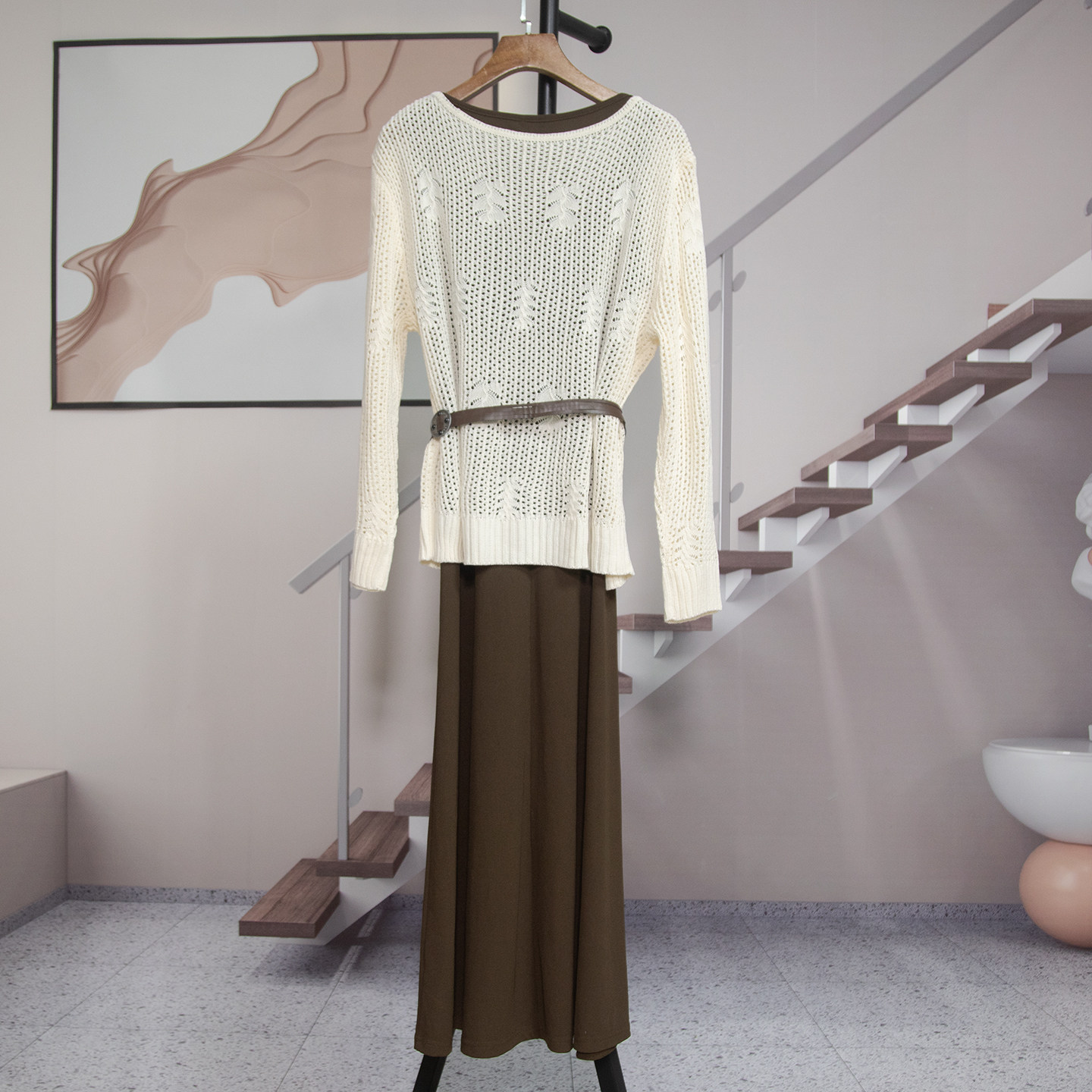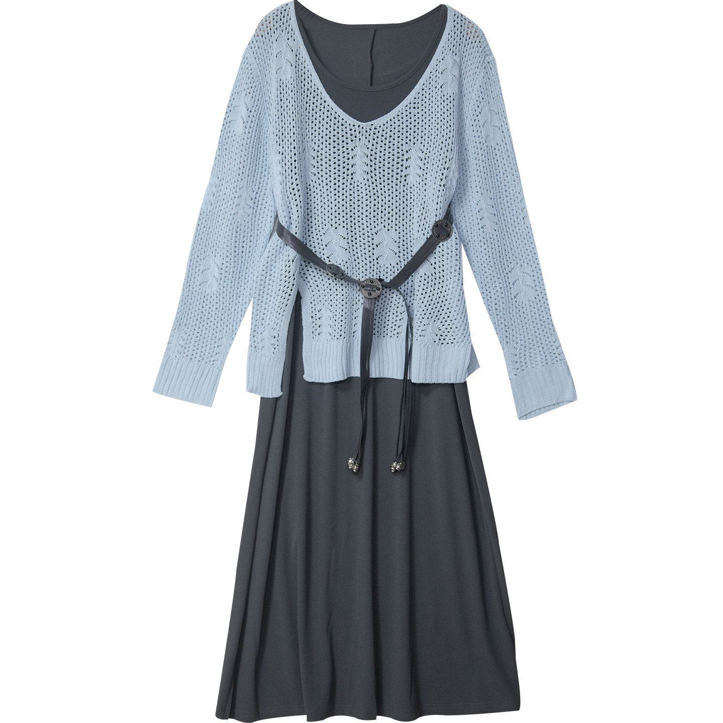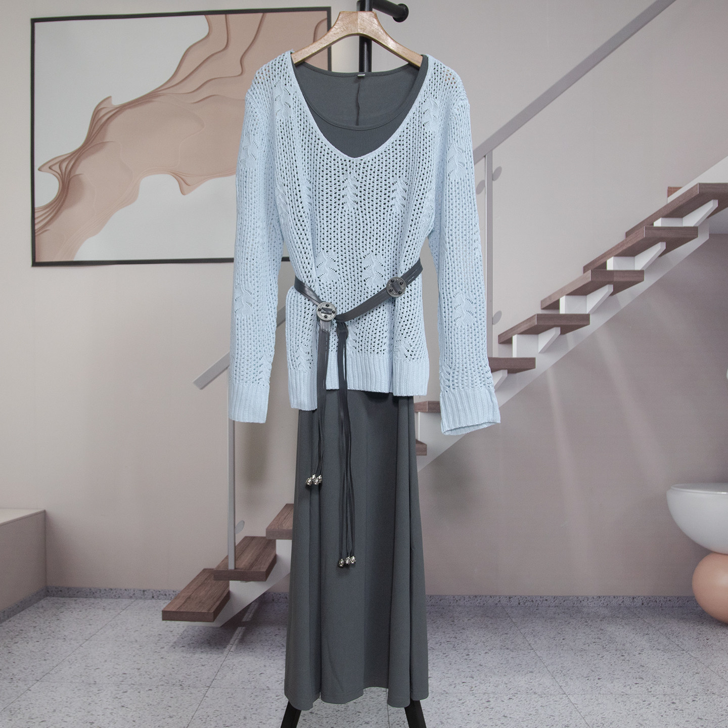 慵懒风镂空针织衫背心裙长裙两件套女2026春季新款显瘦套装潮7623