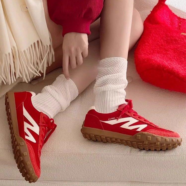 迪丽热巴应援色鞋子骆驼山海运动鞋女鞋低帮复古德训鞋子休闲板鞋