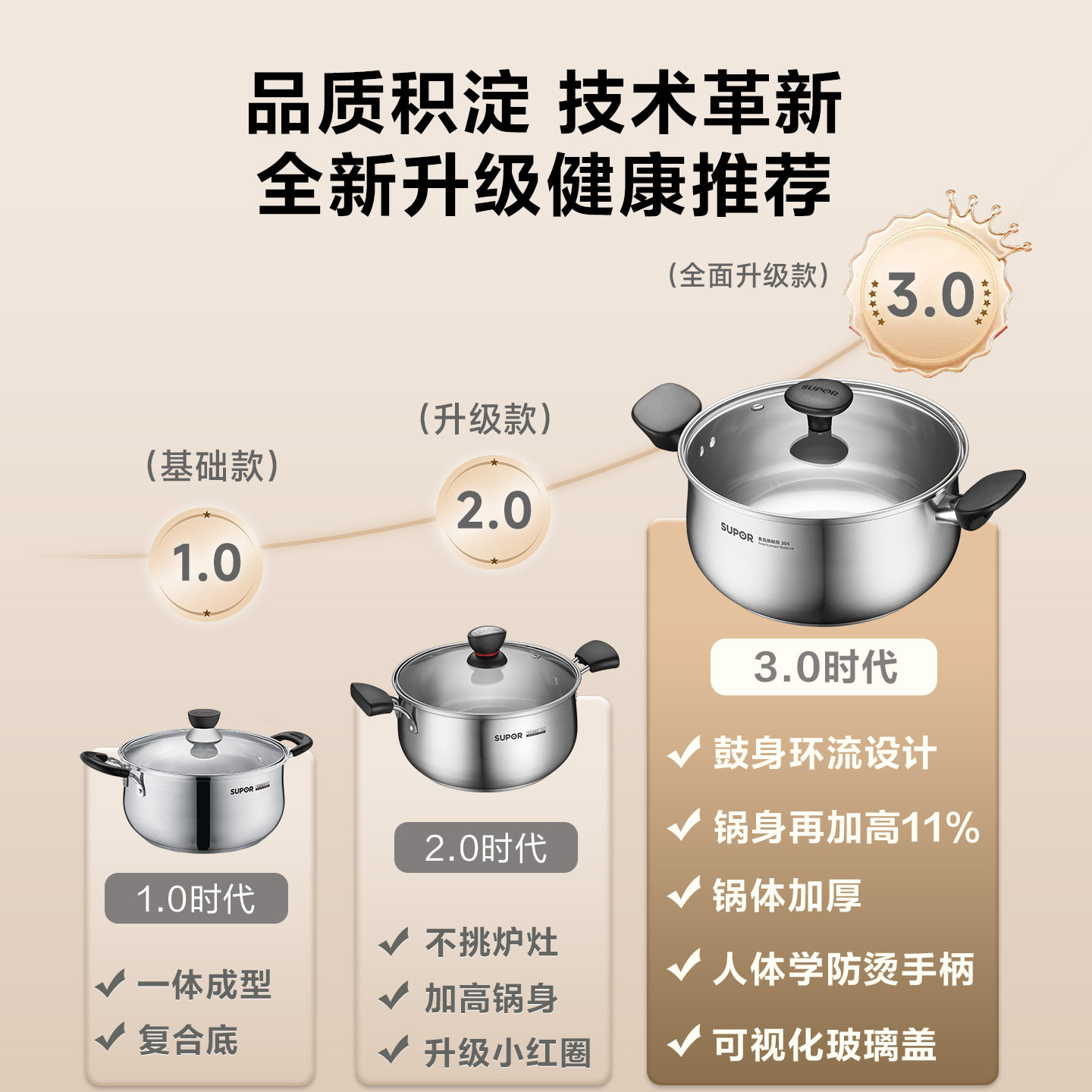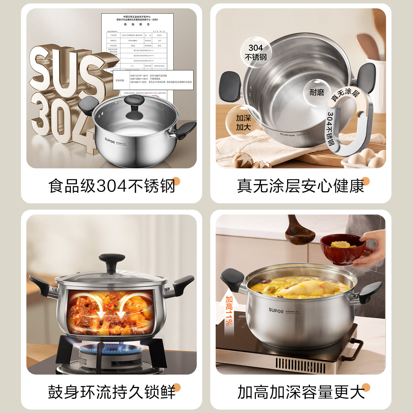 苏泊尔304不锈钢汤锅家用加厚奶锅煮粥锅小煮锅蒸煮锅电磁炉炖锅