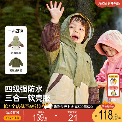 【4级防水】男童三合一外套宝宝春装男女童软壳服登山防风童装潮