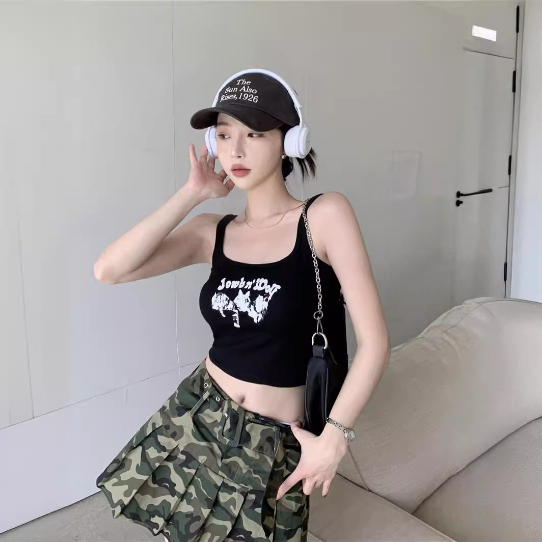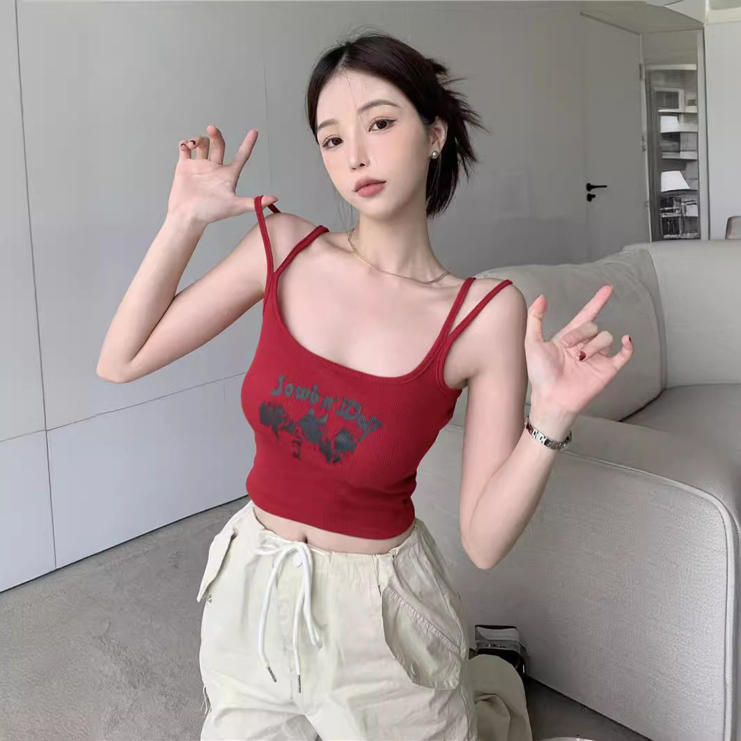 2026 women clothes网红辣妹短款露脐外穿小吊带学生上衣夏季修身