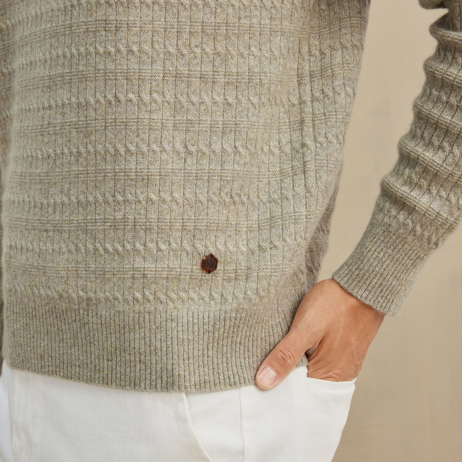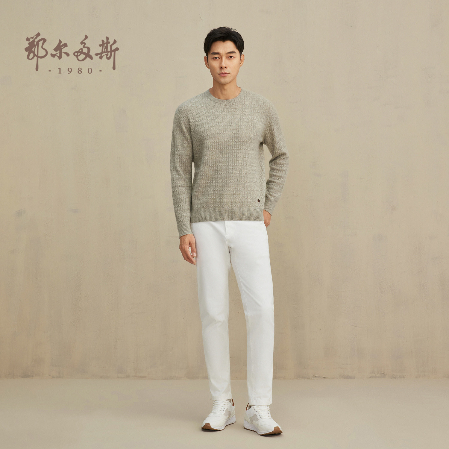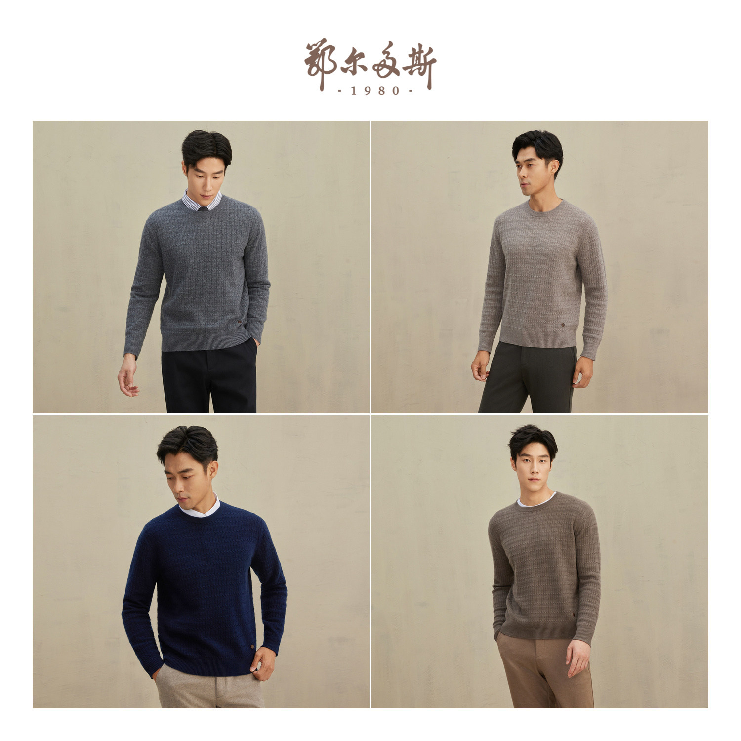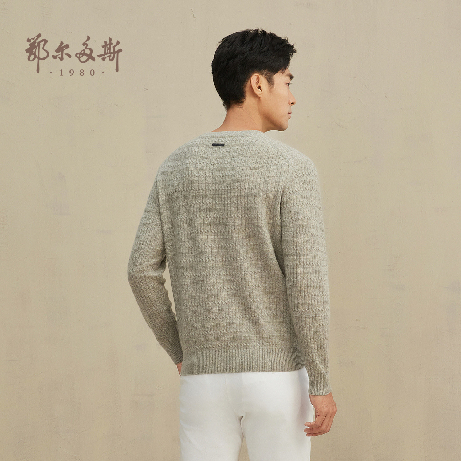 鄂尔多斯1980 圆领绞花羊绒衫秋冬翻花质感男针织套衫