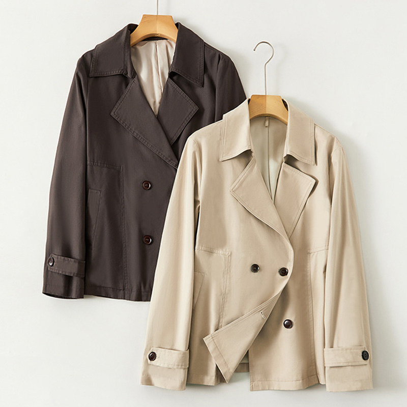 品质巨好!百搭双排扣短款纯棉风衣 春秋新款西装领休闲外套上衣
