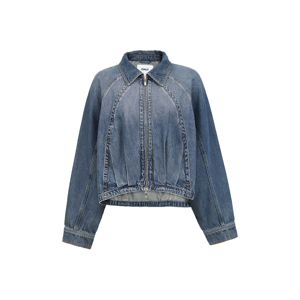 绫致ONLY2025秋冬新款宽松插肩袖翻领渐变水洗牛仔外套女